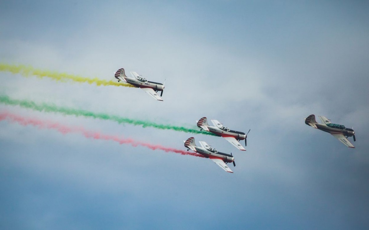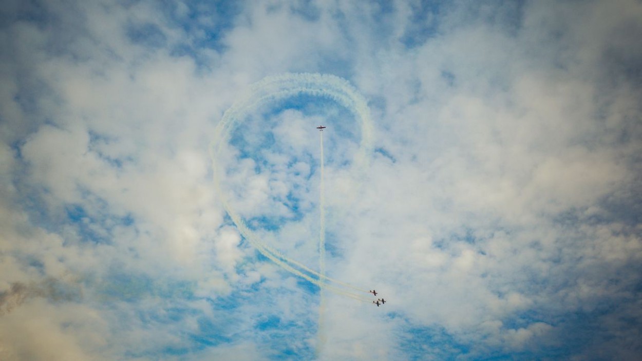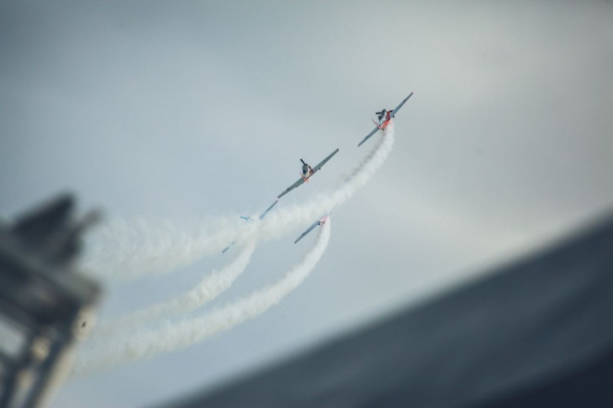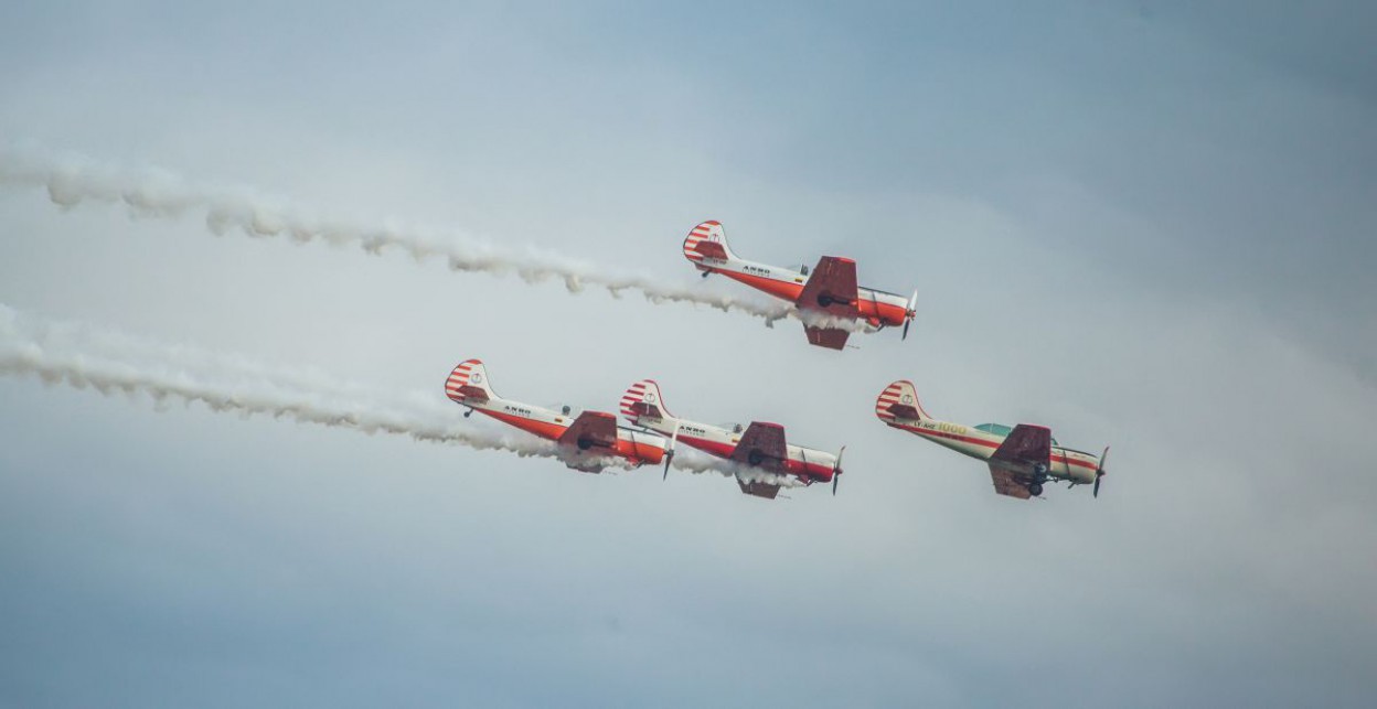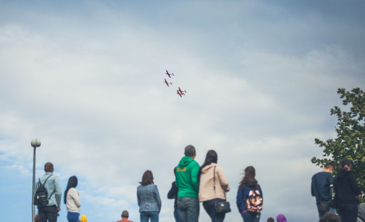 Renginį pradėjo akrobatinių skrydžių grupė ,,Anbo”, danguje ne tik paleidusi Lietuvos vėliavos spalvų dūmus, bet rodžiusi ir įvairias figūras, akrobatinius triukus, prikausčiusius susirinkusiųjų dėmesį, kurie pasirodymams negailėjo plojimų.