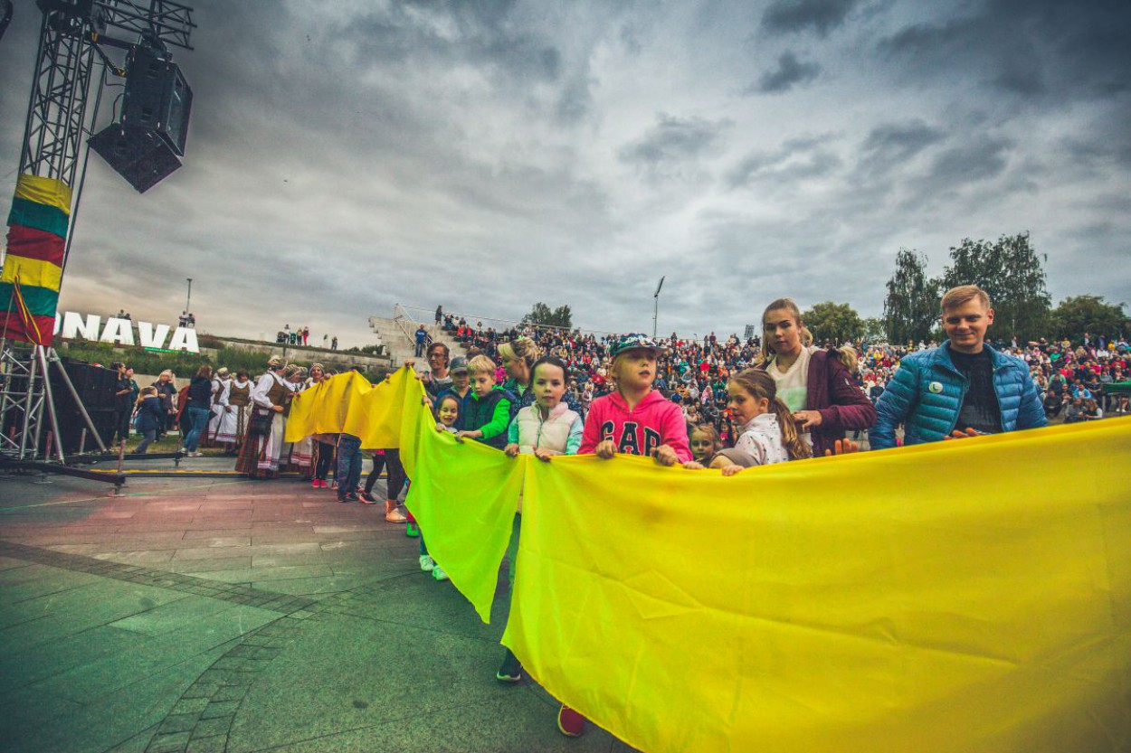 Renginio vedėjas Paulius Skučas kvietė visus simboline vėliava prisijungti prie didžiosios Lietuvos vėliavos Jonavoje, kurią, tautiškais drabužiais pasipuošę, kėlė kultūros centro savanoriai: Rugilė Paplauskaitė ir Tomas Sabutis.