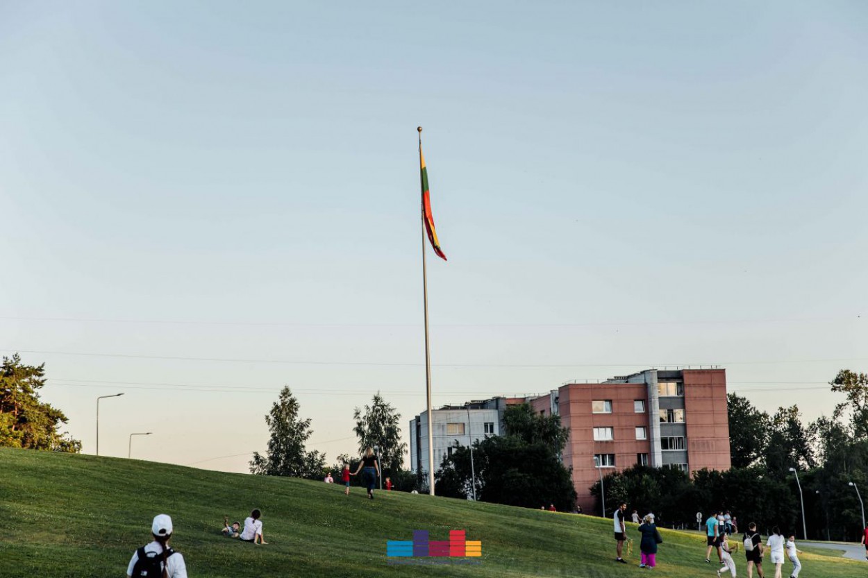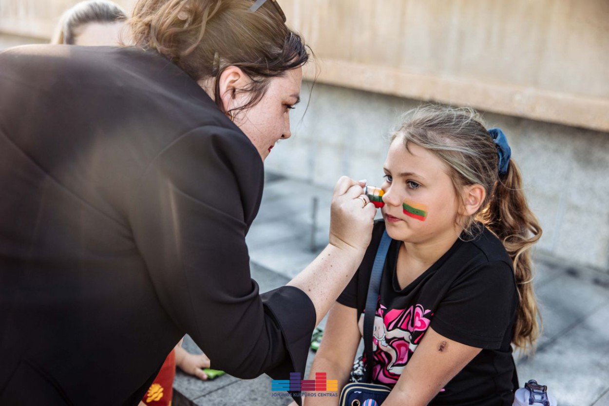 Slėnyje smagiai bėgiojo vaikai su ore plevenančiomis trispalvėmis, bei veidukus puošė vėliavos spalvos.