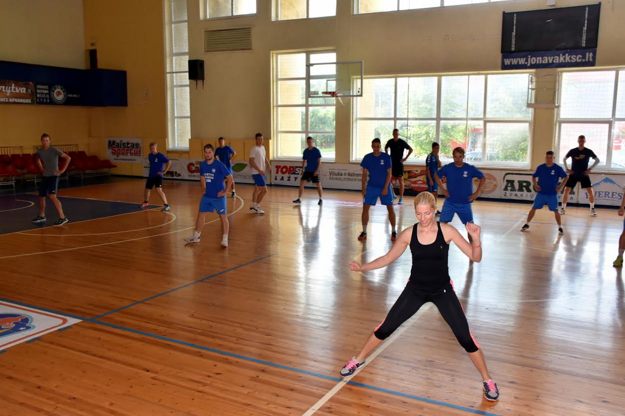 Jonavos mieste septynerius metus šią sporto šaką propaguojanti jauna ir žavi aerobikos trenerė teigia, kad dirbti su profesionaliais žaidėjais – nauja ir įdomi patirtis. „Man paskambino pats R. Poškus ir paprašė vieną ar kelis kartus per mėnesį surengti aerobikos treniruotes. Dažniausiai aš dirbu su moterimis ir vaikais, tad darbas su vyrais man buvo savotiškas iššūkis. Vyrai – konkretūs: ateina, padirba ir išeina, jų skatinti nereikia, visai kitaip nei su moterimis. Be to, jie – profesionalai, pakelia didelį fizinį krūvį. Tad parengiu jiems sudėtingesnę, įdomesnę treniruotę. Iš pradžių jiems patiems buvo keista trypčioti pagal muziką, bet vaikinai greitai prisitaikė. Apskritai jie labai linksmi, per treniruotes vis nesiliauja juokauti. Tačiau dirba, klauso, viską daro sąžiningai“, – teigė Ž. Jefimenkė.