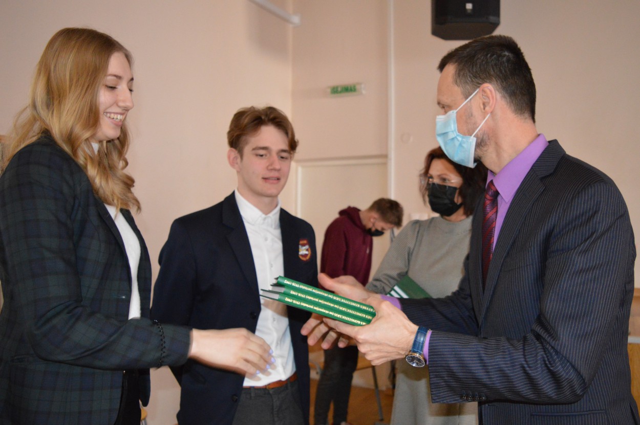 Lietuvai nusipelniusias iškilias asmenybes, svarbiausius mūsų valstybės istorijos faktus, geografijos, kultūros ir literatūros ypatumus gimnazistai prisiminė atsakinėdami į antrokų Medos ir Beno parengtus „Kahoot“ viktorinos klausimus. Kaip ir reikėjo tikėtis, ant viktorinos laimėtojų pakylos išsirikiavo egzaminams