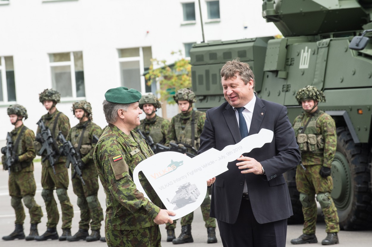 „Tai vienas ambicingiausių pastarųjų metų Lietuvos kariuomenės modernizavimo projektų, kuris padės užtikrinti Lietuvos saugumą artimiausius kelis dešimtmečius“ , – sakė PKM „Vilkas“ perdavimo ceremonijoje dalyvavęs krašto apsaugos ministras Raimundas Karoblis.