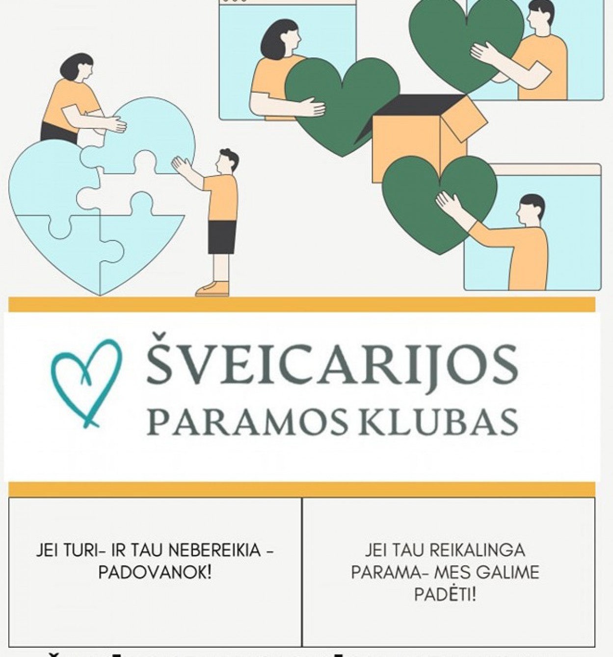 Jonavos rajono, Šveicarijos kaimo progimnazijoje nuo vasario 27 dienos įsteigtas paramos klubas, kuriame žmonės turi galimybę aukoti savo jau nebenešiojamą garderobą - drabužius bei avalynę, tokiu būdu padėdami sunkiai besiverčiančioms šeimoms. Pasak progimnazijos direktorės Vainetos Tomaš, Šveicarijos progimnazija yra vienintelė Jonavos miesto ir rajono mokykla, įsteigusi tokį klubą.