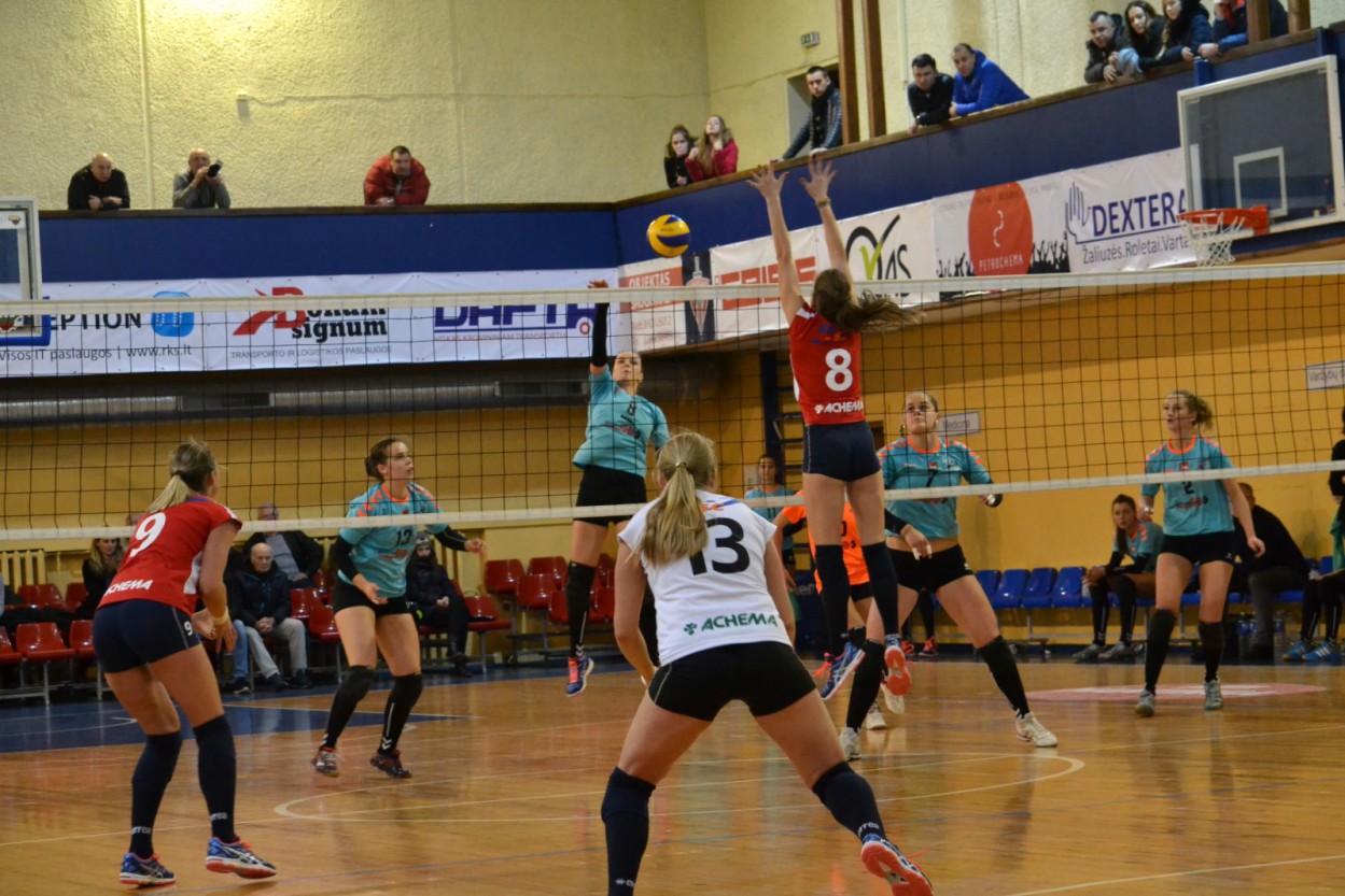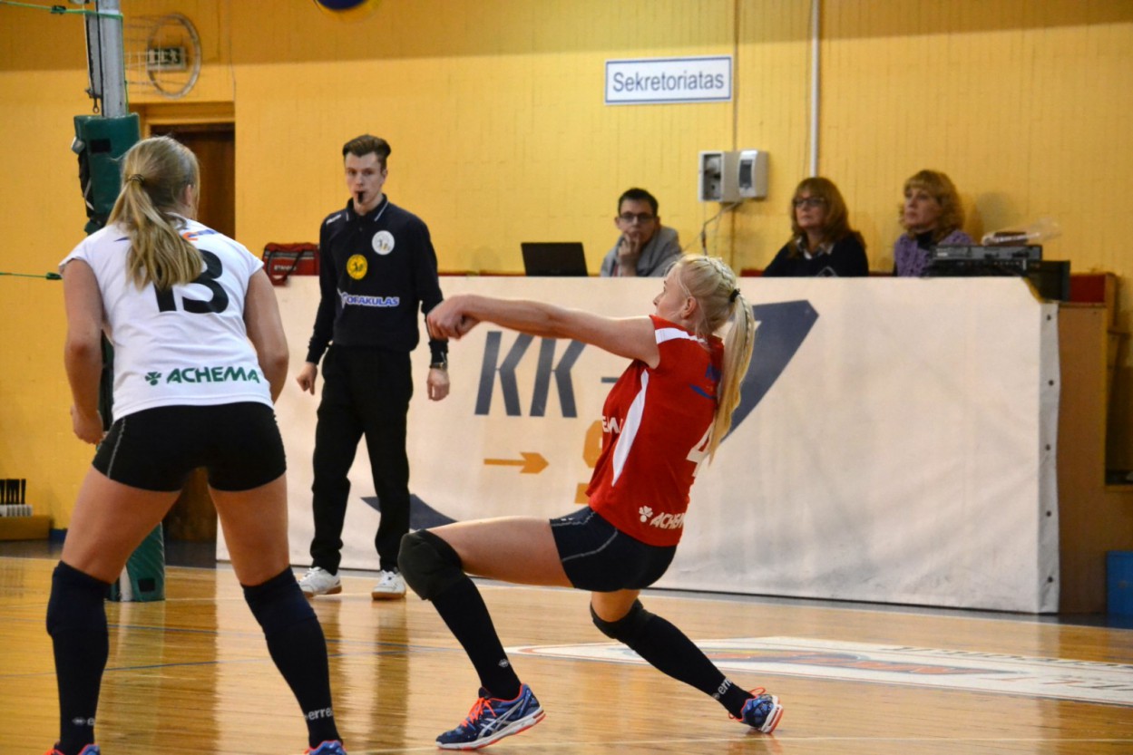 Šeštadienį šių komandų dvikova vyko Jonavoje. Kūno kultūros ir sporto centro salėje susirinkę žiūrovai pasidalino į dvi stovyklas ir „sirgo“ už savo miestų ekipas. Susitikimo pradžioje atrodė, kad Lijos Darandovienės treniruojama „Achema-KKSC“ mes rimtą iššūkį. Vienu metu atrodė, kad varžoves gali ir pranokti. Pirmajame sete sekėsi beveik viskas ir jų pranašumas augo nenumaldomai, laimint setą net 25:16.
