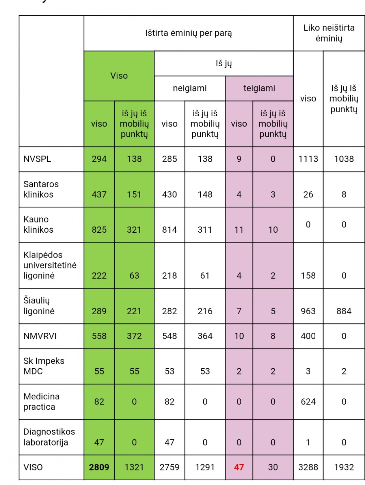 Šie duomenys surinkti iš visų laboratorijų, kuriuose šie tyrimai atliekami.