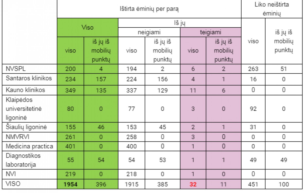 Šie duomenys surinkti iš visų laboratorijų, kuriuose šie tyrimai atliekami.