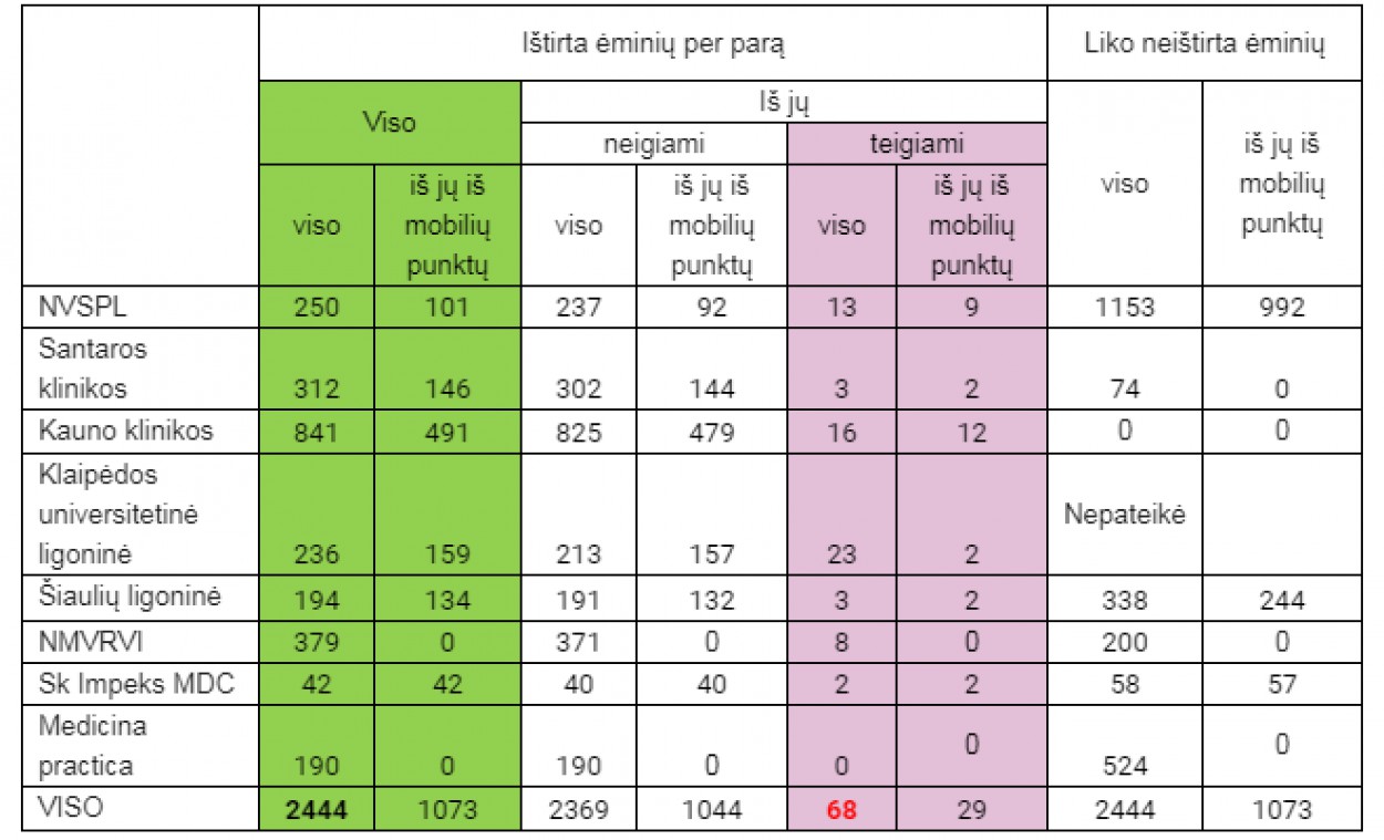 Šie duomenys surinkti iš visų laboratorijų, kuriuose šie tyrimai atliekami.