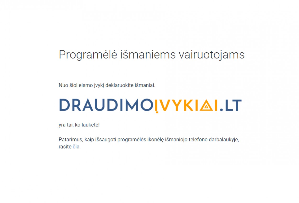 Į avariją Lietuvoje patekę vairuotojai nuo šiol galės užpildyti elektroninę eismo įvykių deklaraciją. Vairuotojams skirtoje nemokamoje programėlėje bus galima užfiksuoti eismo nelaimės aplinkybes bei informaciją apie ją perduoti draudimo bendrovėms. Šią programėlę vairuotojai ras adresu www.draudimoivykiai.lt.