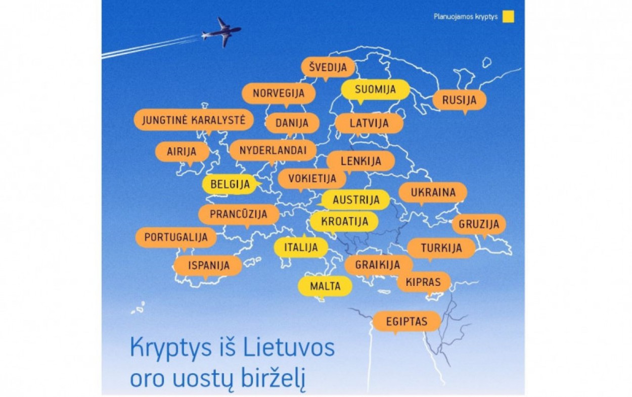 Lietuvos oro uostai primena, kad visas esamas ir artimiausiu metu planuojamas skrydžių kryptis iš Vilniaus, Kauno ir Palangos oro uostų, taip pat reikalavimus keliautojams galima rasti specialiame polapyje www.vilnius-airport.lt/kryptys