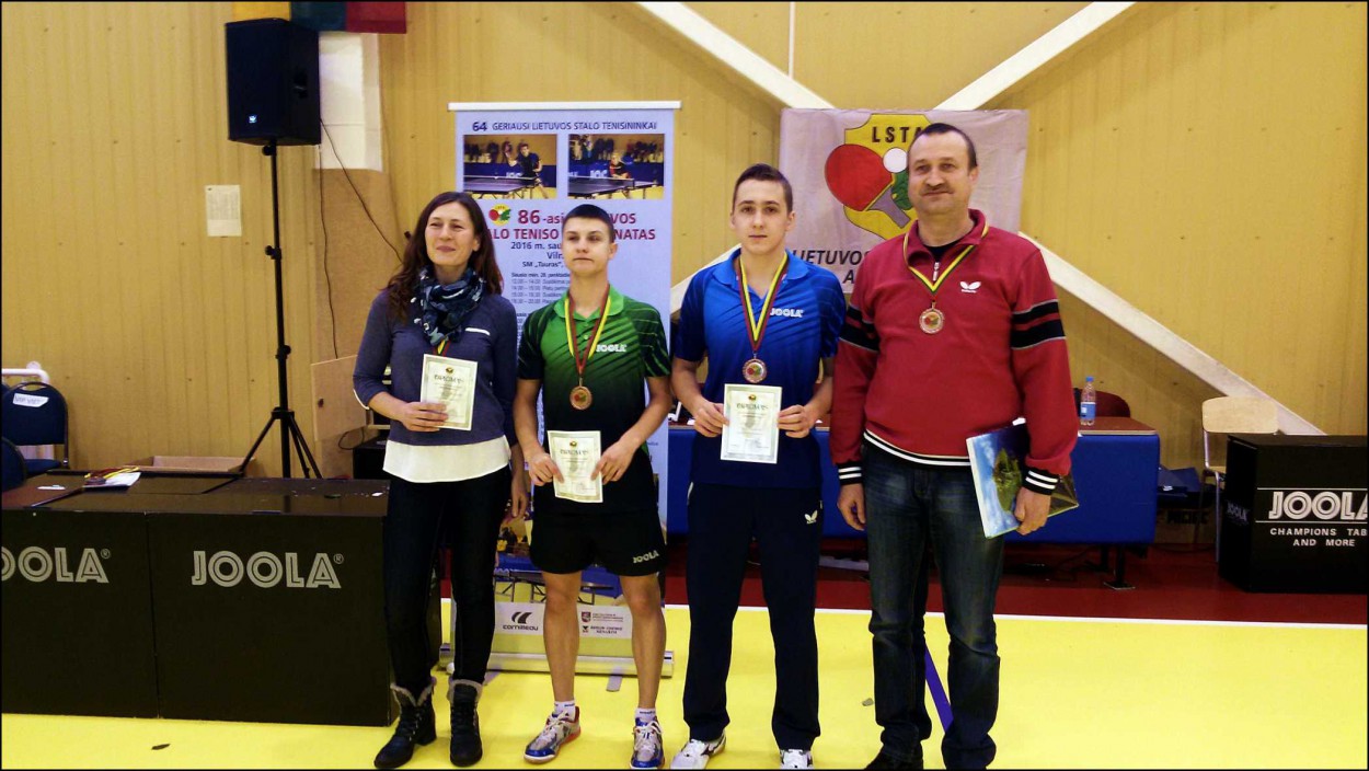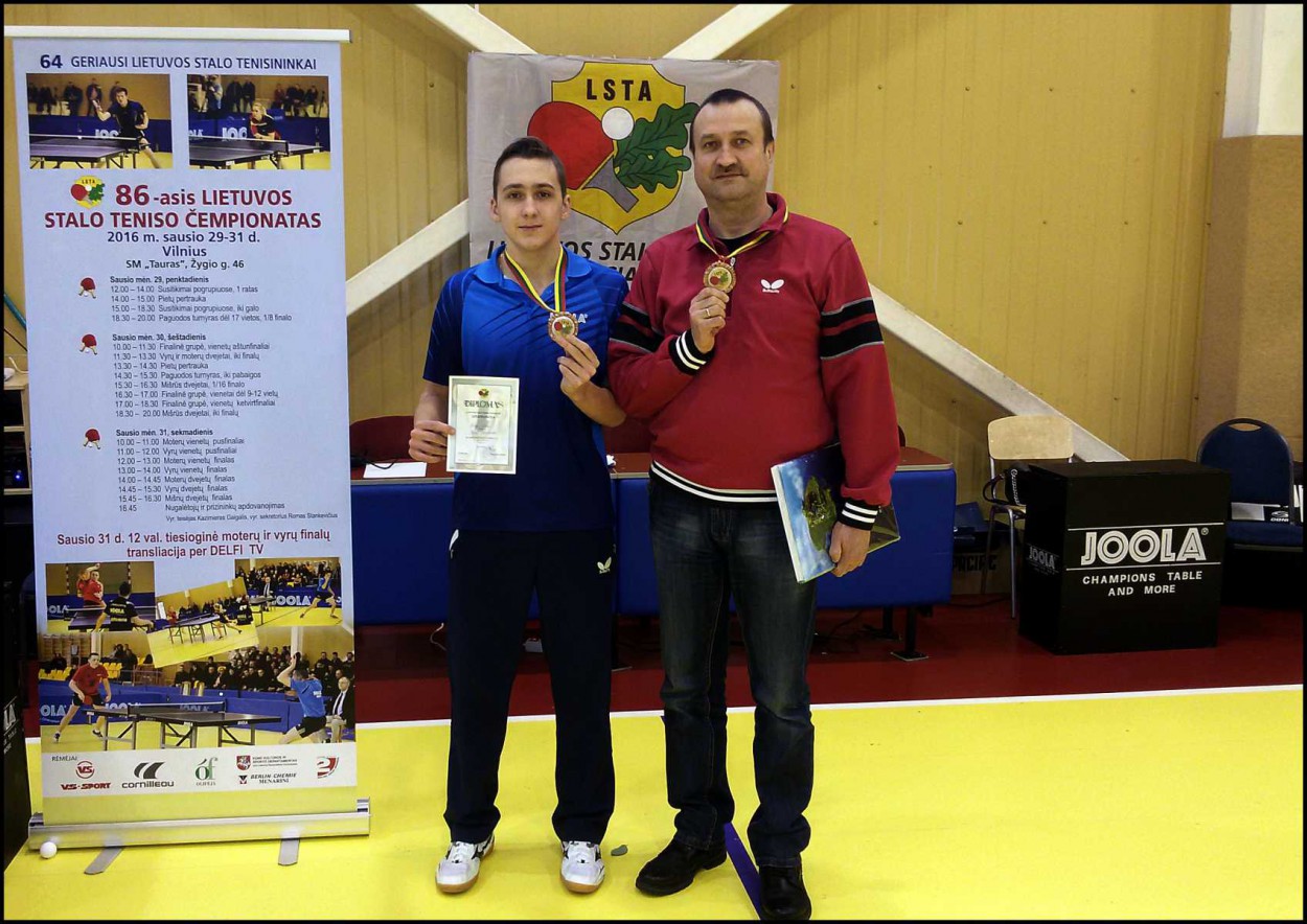 Asmeninėse varžybose nepasisekė vienam geriausių Jonavos jaunajam stalo tenisininkų Rimui Lesiv (treneris Saulius Bureika), kuris pateko tarp pajėgiausių šešiolikos žaidėjų. Visgi, jonaviečiui nepalankūs buvo ir burtai. Nors R.Lesiv pogrupyje užėmė pirmąją vietą, bet atkrintamosiose susitiko su 2014 metų čempionu, kito pogrupio antroje vietoje buvusiu Arnoldu Domeika. Šis žaidėjas nukeliavo toli, iki pat pusfinalio ir iškovojo trečiąją vietą, nusileisdamas čempionato nugalėtojui iš Klaipėdos Alfredui Udrai. Jonaviečiui varžybos baigėsi aštuntfinalyje.