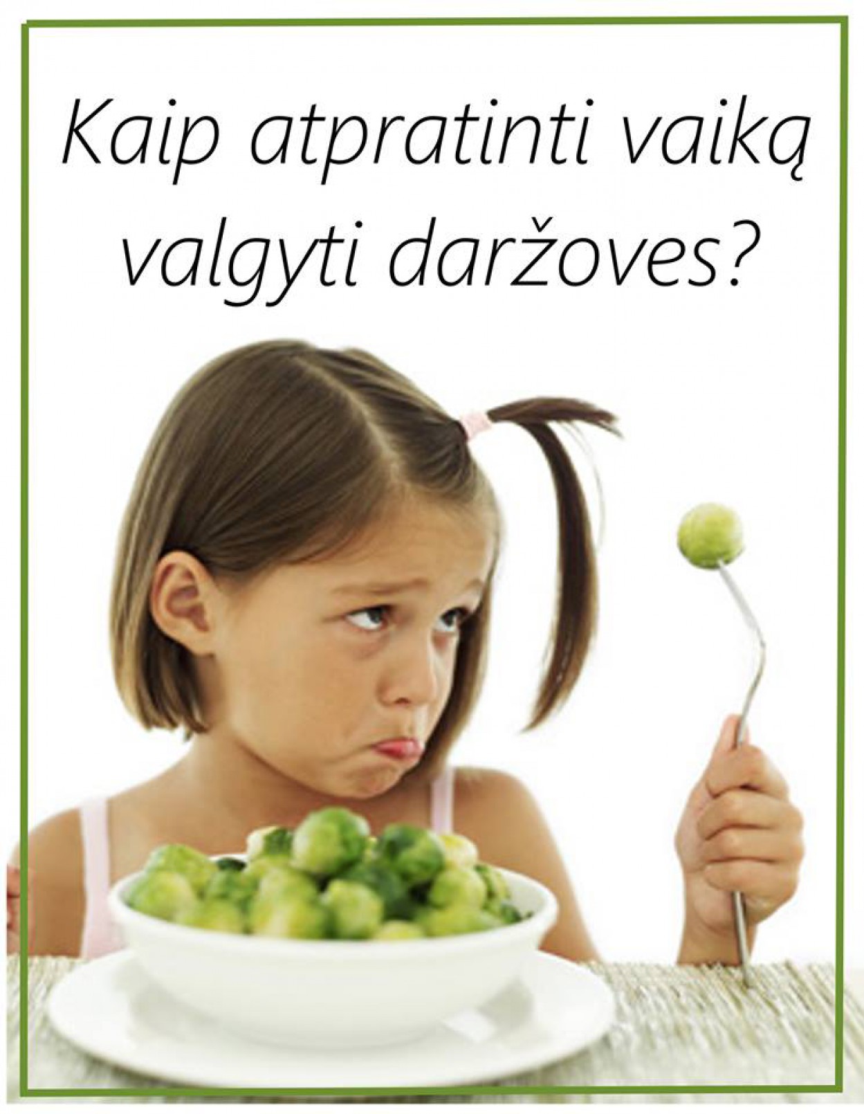 - Rodykite pavyzdį patys valgydami daržoves. Valgydami nuteikite pasibjaurėjimo veido mimika bei kartokite: “Fu, kaip neskanu. Valgyčiau daržoves tik kebabe”.