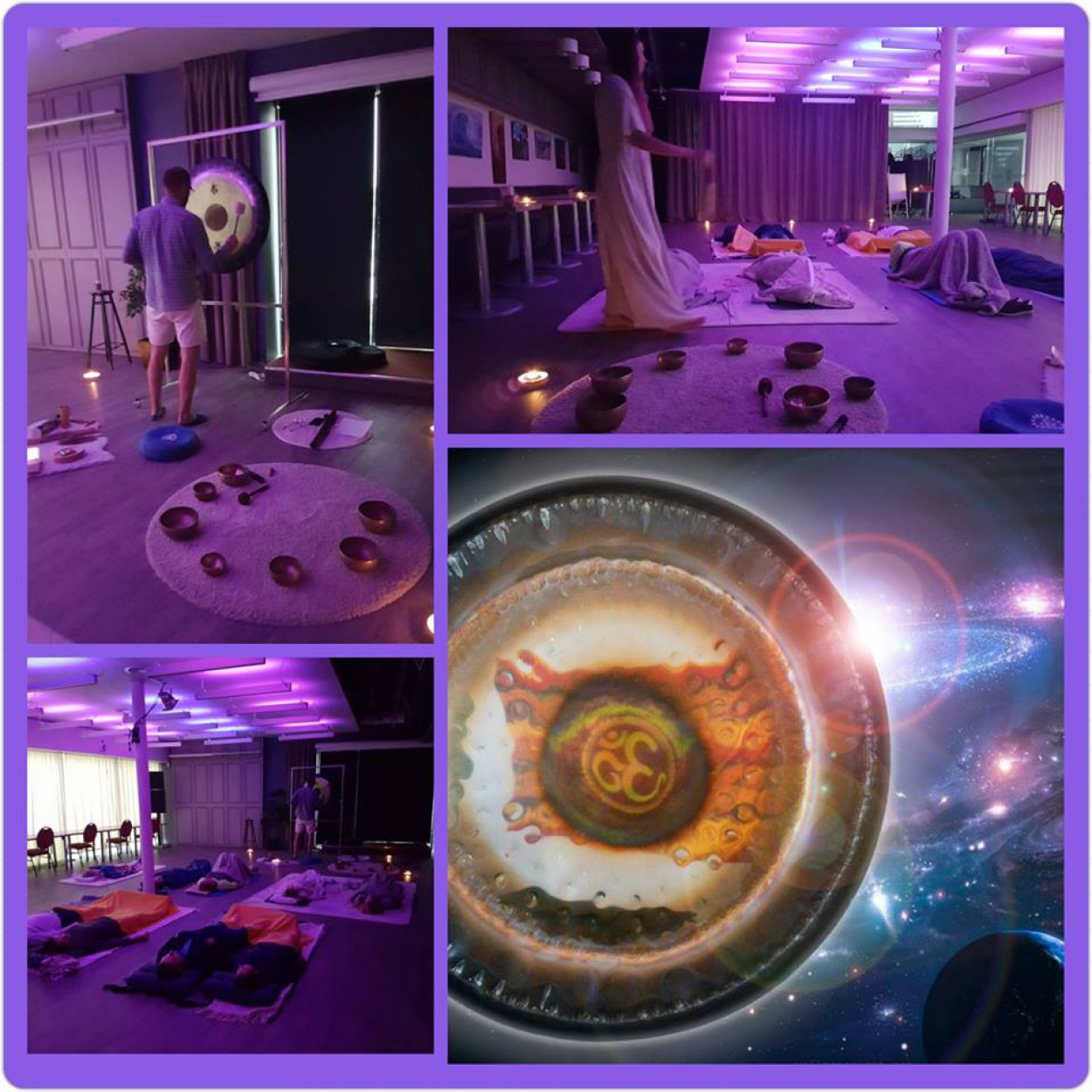 Grupinės terapijos meditacija "MAUDYNĖS GONGE" yra senovinė technika, visa garso vonia, sukurianti nuostabų jausmą visuose mūsų kūnuose. Gongo garso ir Tibeto dubenų, koshi varpelių , dambrelių, fleitos, perkusijų garso signalai siunčia signalus į mūsų visus kūnus, fizinį, emocinį, dvasinį...