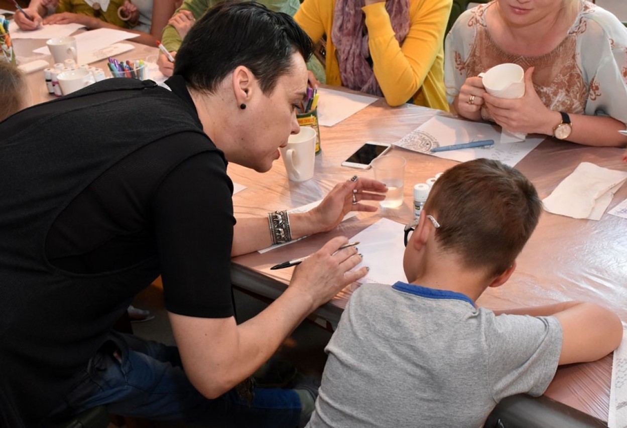 Kultūros centro Meno galerijoje vyko projektas „Puodeliaukime su Nomeda", kurį vedė žinoma menininkė Nomeda Marčėnaitė, visus susirinkusius mokiusi puodelių dekoravimo meno, o su Nomeda atvykusi Eglė Jokužytė mokė parašyti Brailio raštu pirmąją savo vardo raidę.