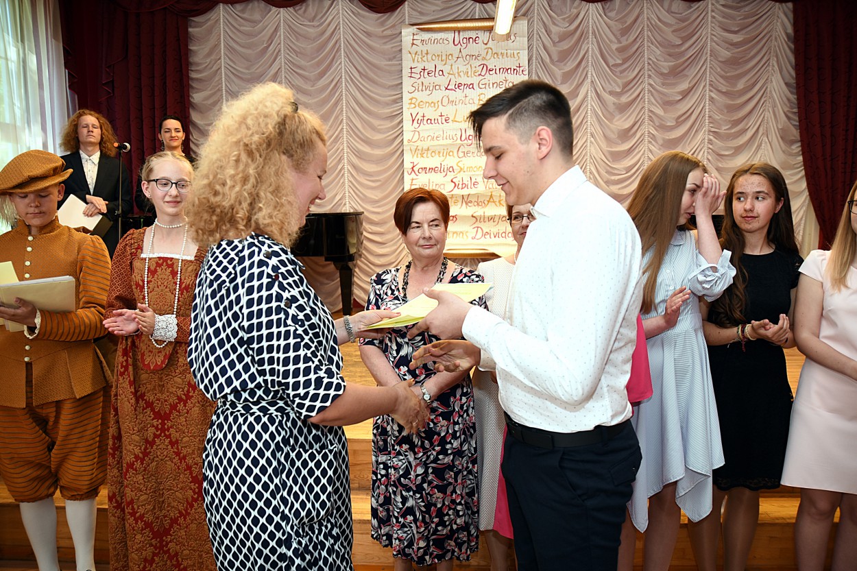 Popietinis birželio 1-osios sujudimas vadinamojoje meno mūzų pilyje ilgam įsimins pagrindiniams tos dienos herojams, kuriems gausiai susirinkusių artimųjų, pedagogų ir draugų akivaizdoje buvo įteikti mokslo baigimo pažymėjimai.