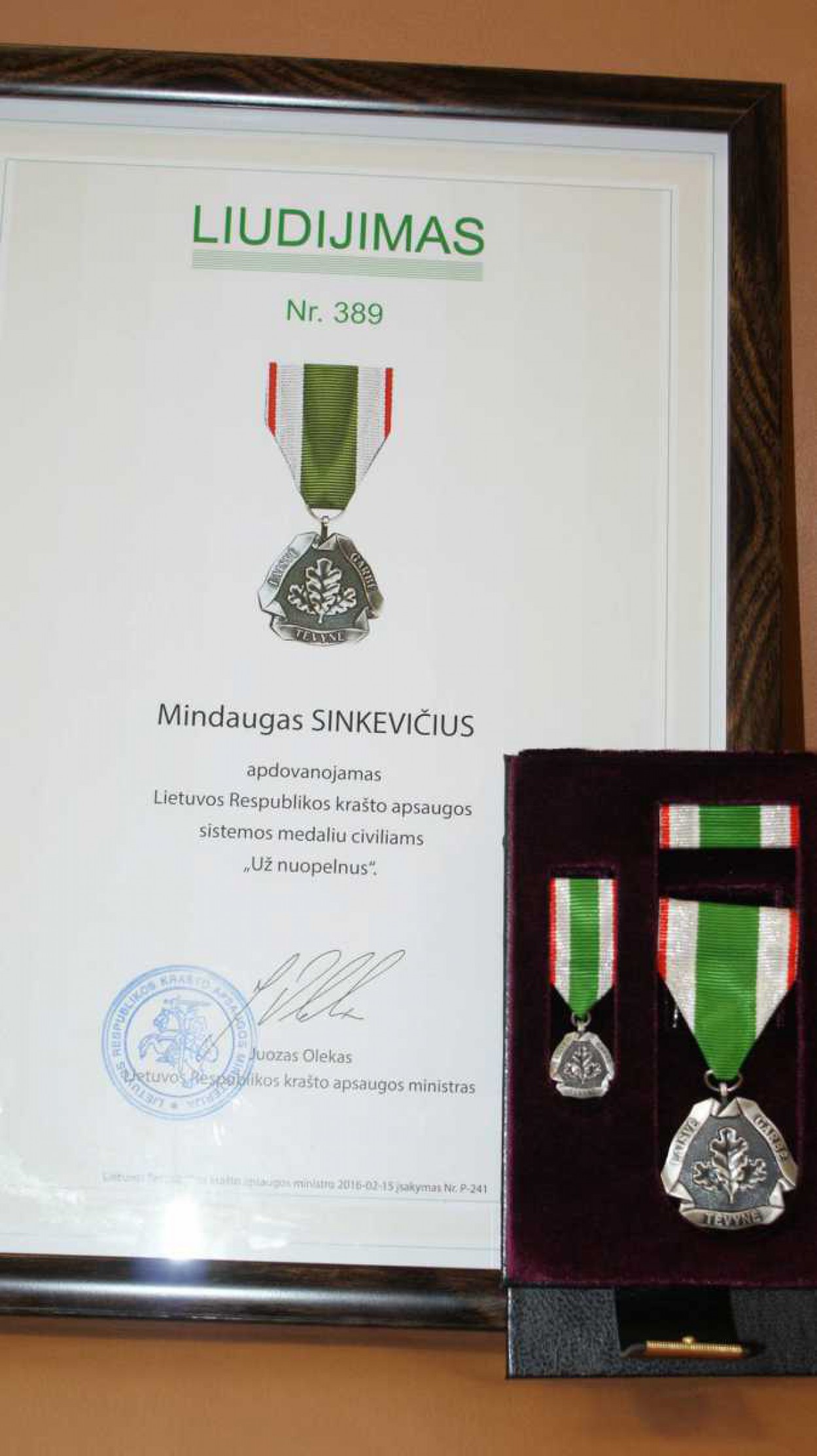 Jonavos rajono savivaldybės merui Mindaugui Sinkevičiui buvo įteiktas Lietuvos Respublikos krašto apsaugos sistemos medalis civiliams „Už nuopelnus”.