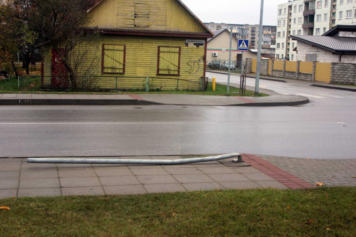 Kažkas „įvažiavo“ ir į atramą prie „Iki“ parduotuvės Kosmonautų gatvėje. Ši vieta taip pat turi būti sutvarkyta.