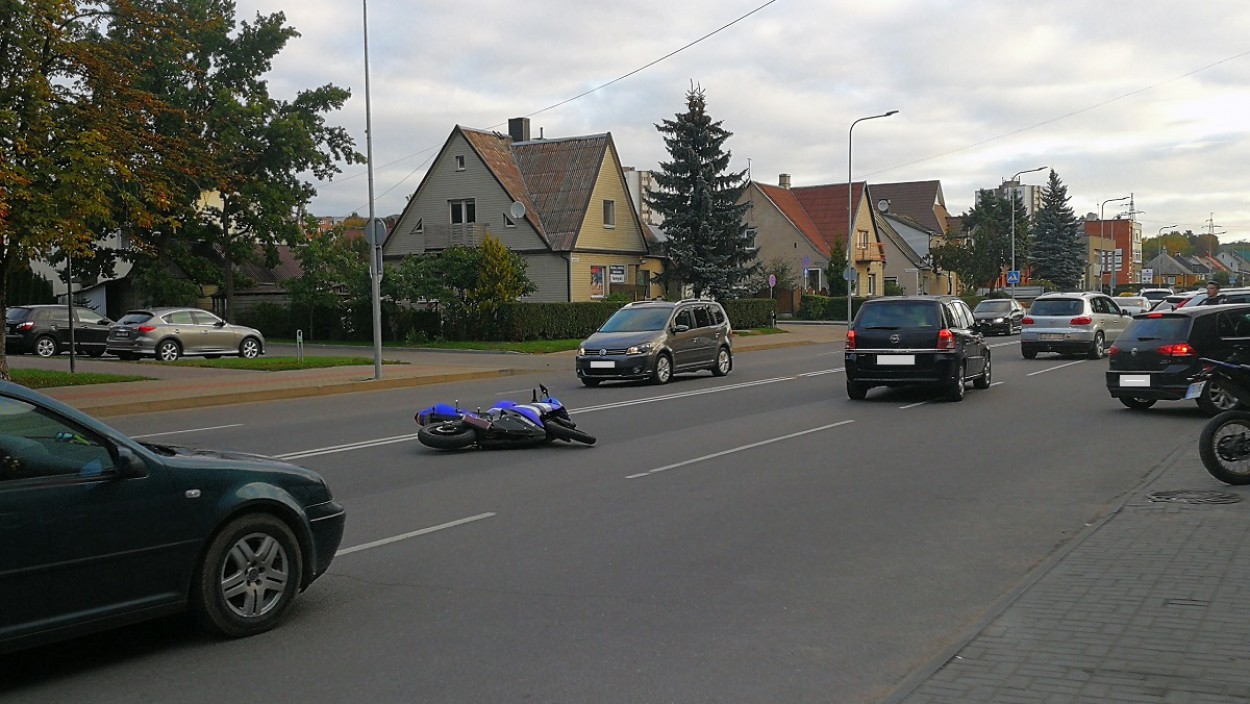 Šiandien, rugsėjo 15-osios rytą, prieš 8 valandą, miesto centre eismą šiek tiek trikdė vidury kelio nuvirtęs ir paliktas motociklas.