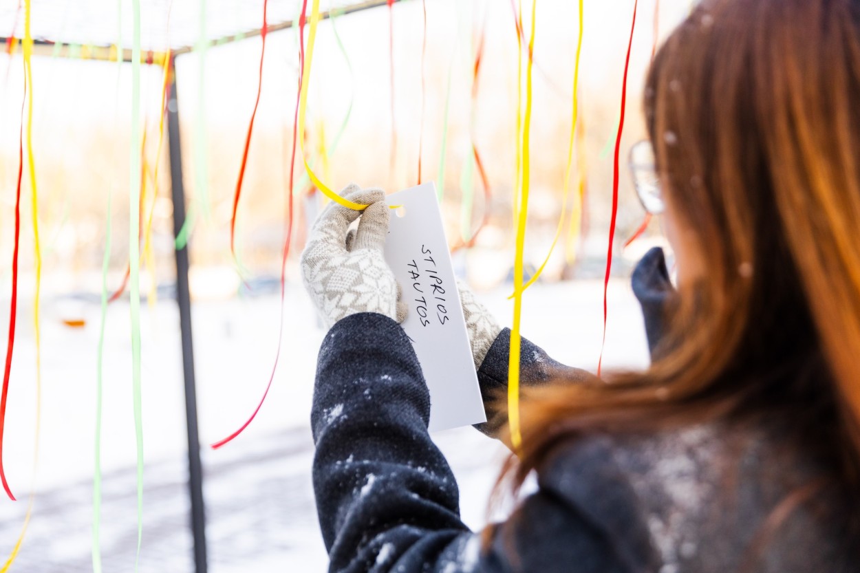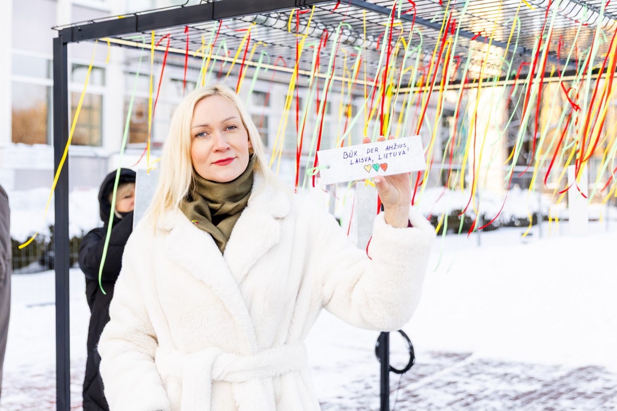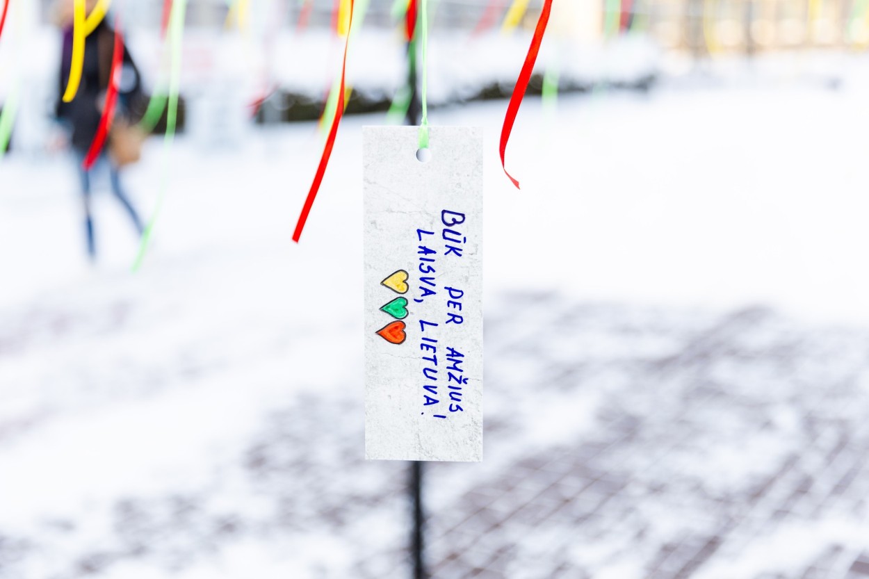 Dar viena simbolinė instaliacija papuošė ir erdvę šalia Jonavos rajono savivaldybės pastato. Čia ant trispalvių kaspinėlių sukabinti jonaviečių linkėjimai Lietuvai – gyvi, asmeniški ir nuoširdūs žodžiai, liudijantys bendruomenės vienybę bei meilę savo šaliai.