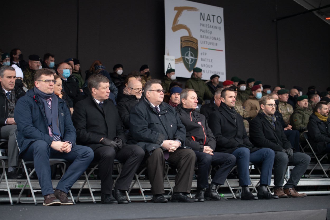 Ceremonijoje dalyvavo ir Lietuvoje jau penktus metus dislokuojamus sąjungininkų karius sveikino Lietuvos Respublikos Prezidentas Gitanas Nausėda, NATO generalinio sekretoriaus pavaduotojas Mircea Geoană, NATO karinio komiteto pirmininkas admirolas Robas Baueris. Ceremonijoje taip pat dalyvavo buvusi Lietuvos Prezidentė Dalia Grybauskaitė, sąjungininkų gynybos ministerijų ir kariuomenių vadai, užsienių šalių gynybos ministerijų atstovai, ambasadoriai bei gynybos atašė, buvę NATO priešakinių pajėgų bataliono kovinės grupės vadai, kiti svečiai.