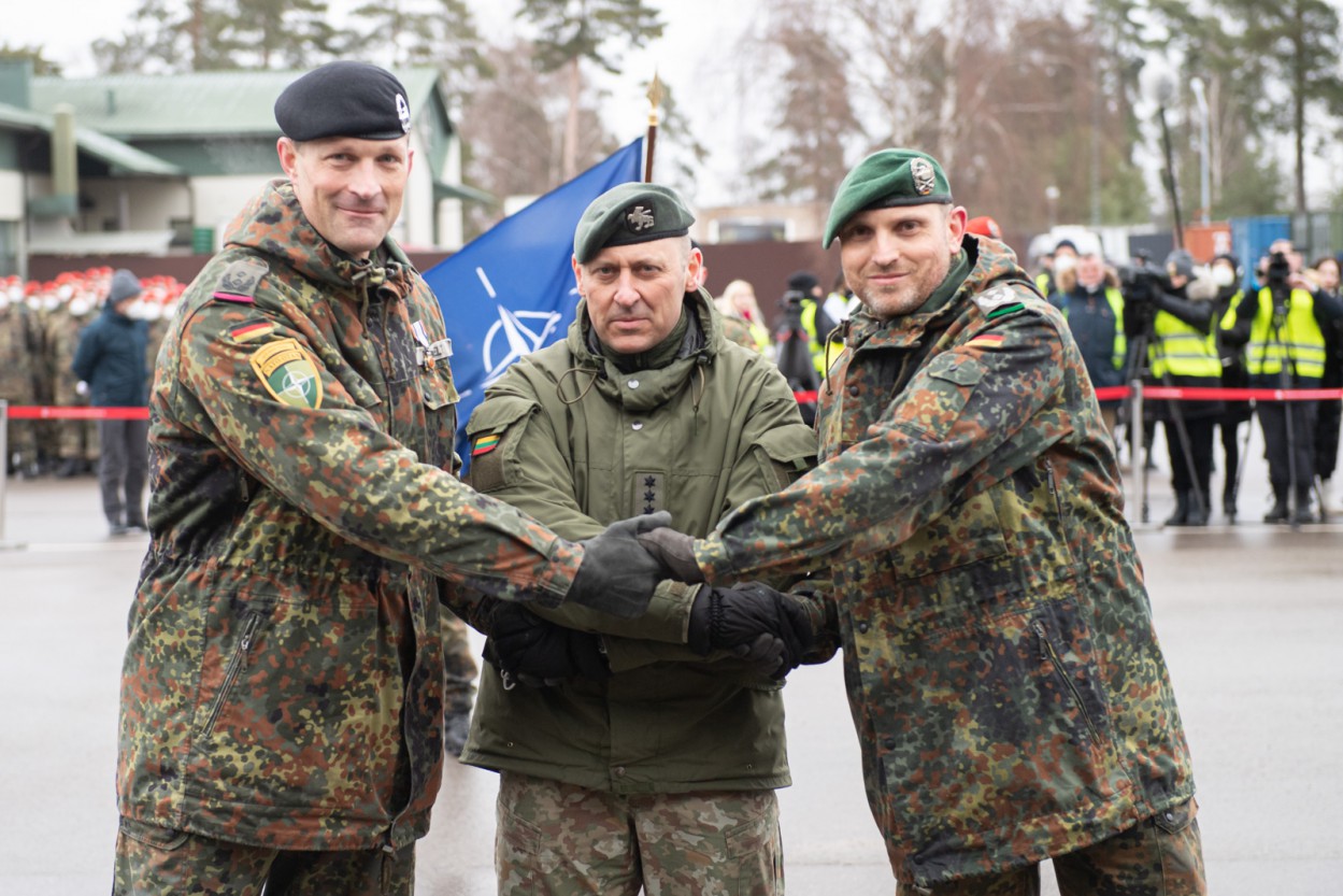 Ceremonijos metu taip pat įvyko oficialus NATO priešakinių pajėgų bataliono kovinės grupės rotacijos bei vadovybės pasikeitimas. Vienuoliktajai karių rotacijai nuo šiol vadovaus Vokietijos kariuomenės pulkininkas leitenantas Danielis Andrä. Daugiausiai karių kovinei grupei skiria būtent jai vadovaujanti Vokietija, karius į Lietuvą taip pat siunčia Belgija, Čekija, Liuksemburgas, Nyderlandai ir Norvegija.