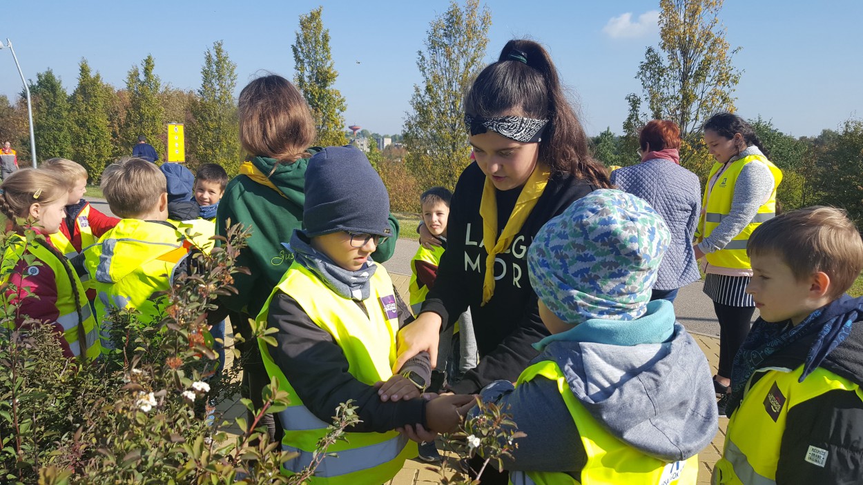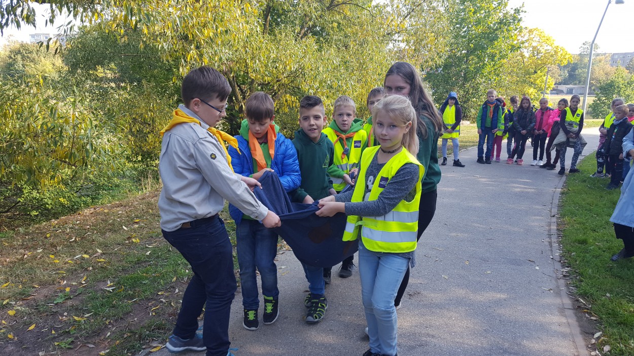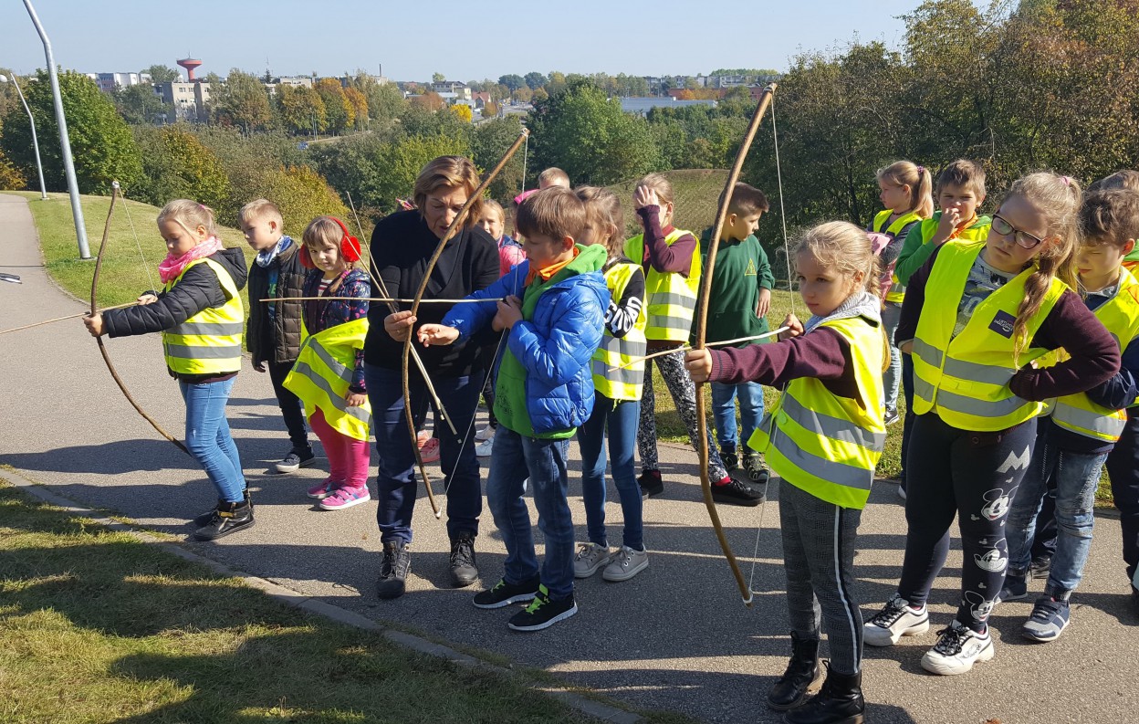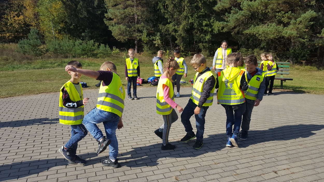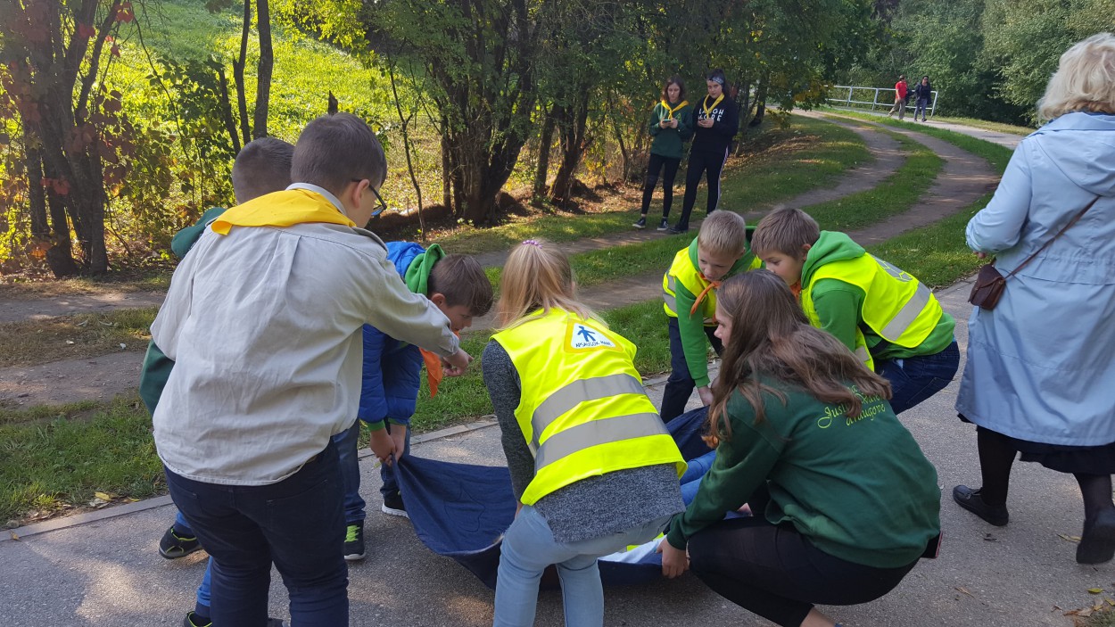 Žygeivių septyniose „stotelėse“ laukė progimnazijos skautai. Jie jaunesniuosius mokinukus mokė kaip stabilizuoti lūžusią blauzdą ir suteikti pagalbą apalpusiam žmogui, kaip šaudyti iš lanko ir įveikti kelyje pasitaikančias kliūtis, paaiškino, kokie svarbūs žmogui yra pojūčiai ir kaip jų pagalba galima išvengti nelaimių. Dar keliauninkai stengėsi kuo greičiau sudėti šviesoforo dėlionę, saugiai pereiti per kelią ir saugiai keliauti pėsčiųjų-dviračių takais. O žygį užbaigėme smagiu žaidimu bei pietumis gamtoje.