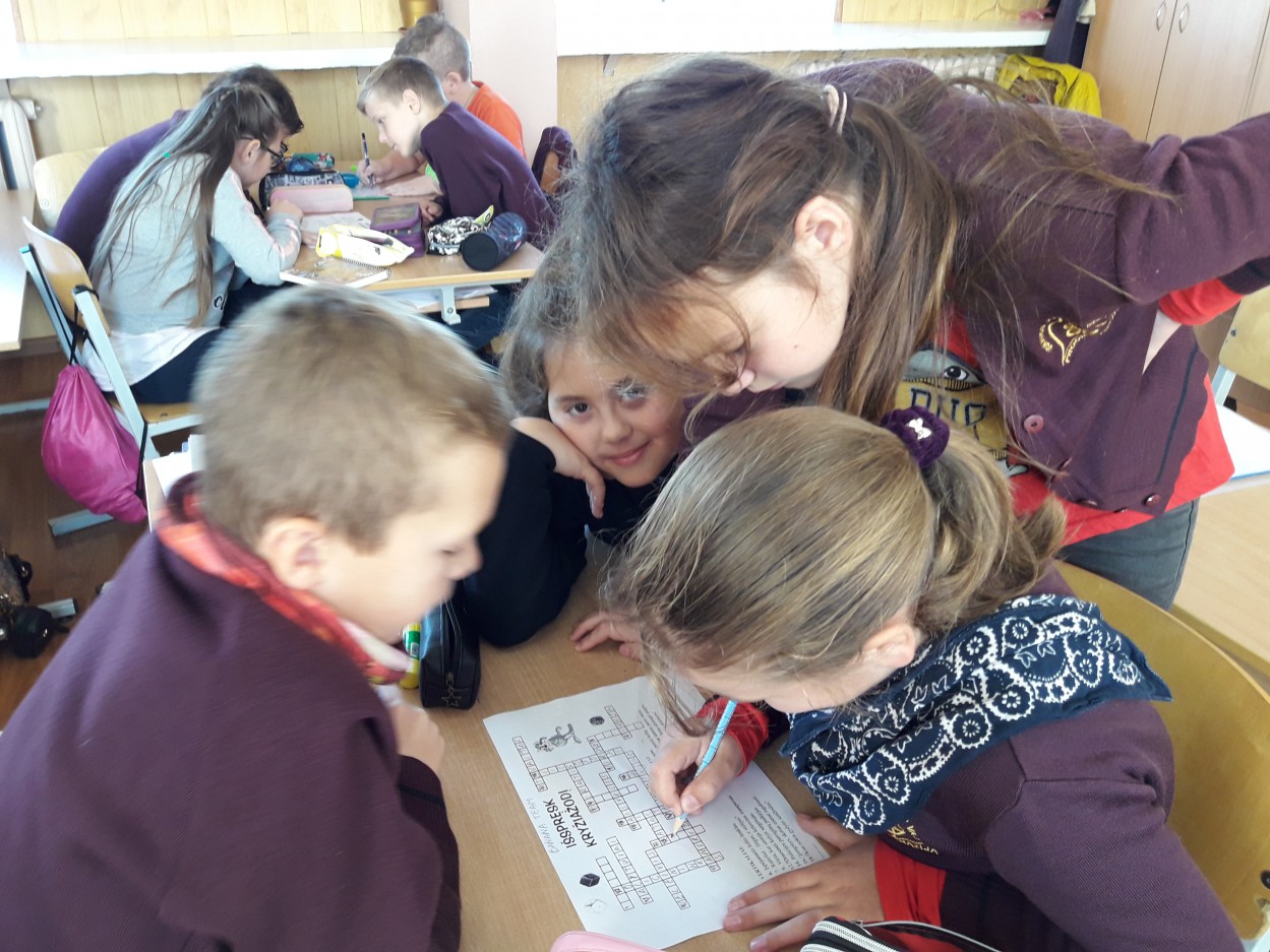 Turizmas ir žygiai visada susiję su pavojais, kurių išvengti mūsų vaikai mokomi nuo pat pirmos klasės. Progimnazija dalyvauja respublikiniame projekte „Eismo saugumas bendruomenėse“ ir daug dėmesio skiria mokinių saugaus elgesio kelyje ir gatvėje įgūdžių formavimui. Tad tie 3-4 klasių mokiniai, kurie šiandien liko klasėse, pasikartojo saugaus eismo kelyje taisykles ir sprendė kryžiažodžius apie tai.