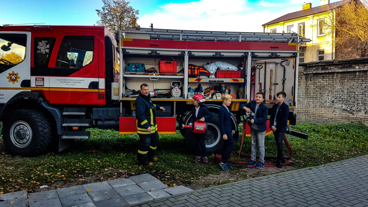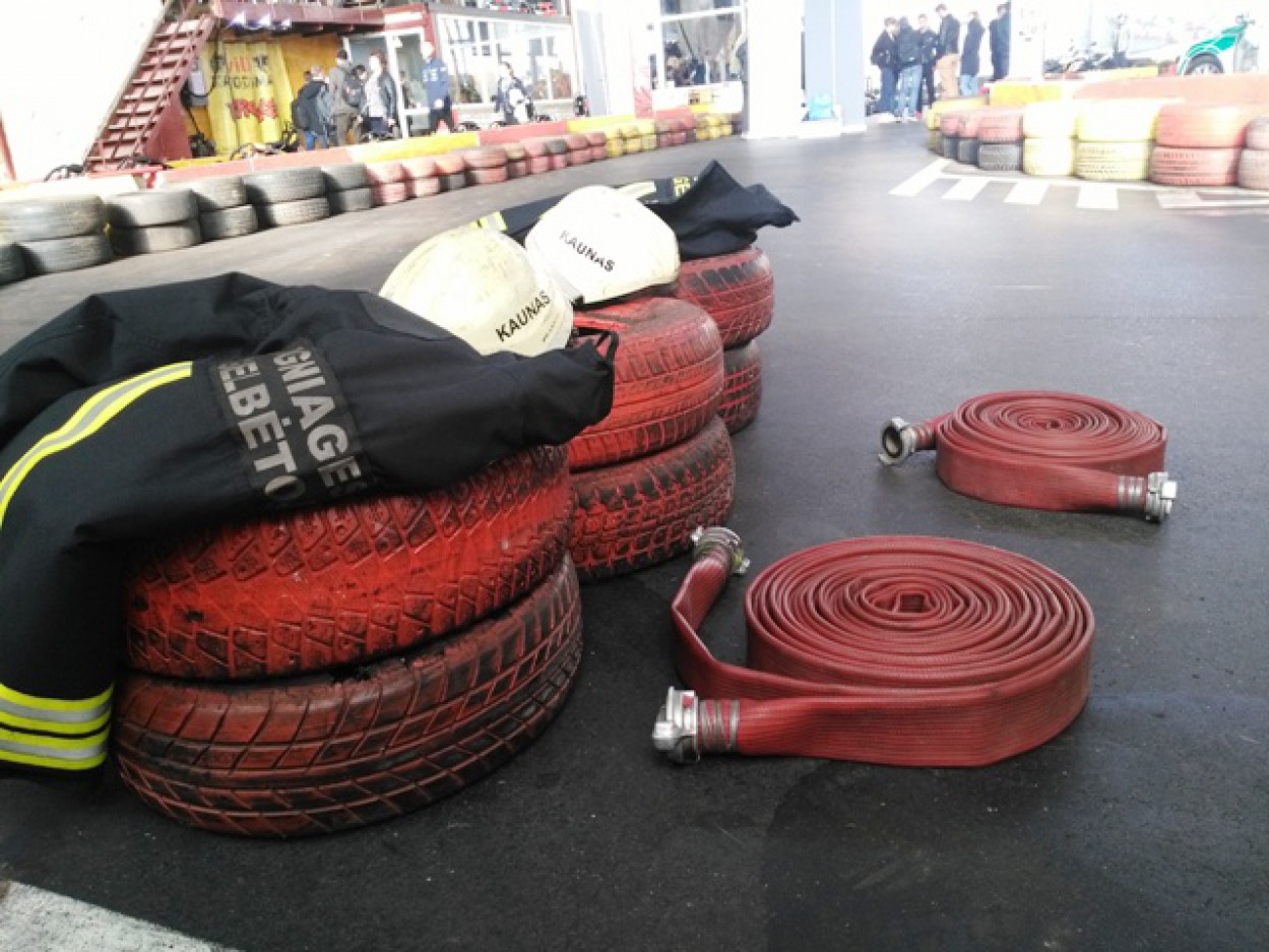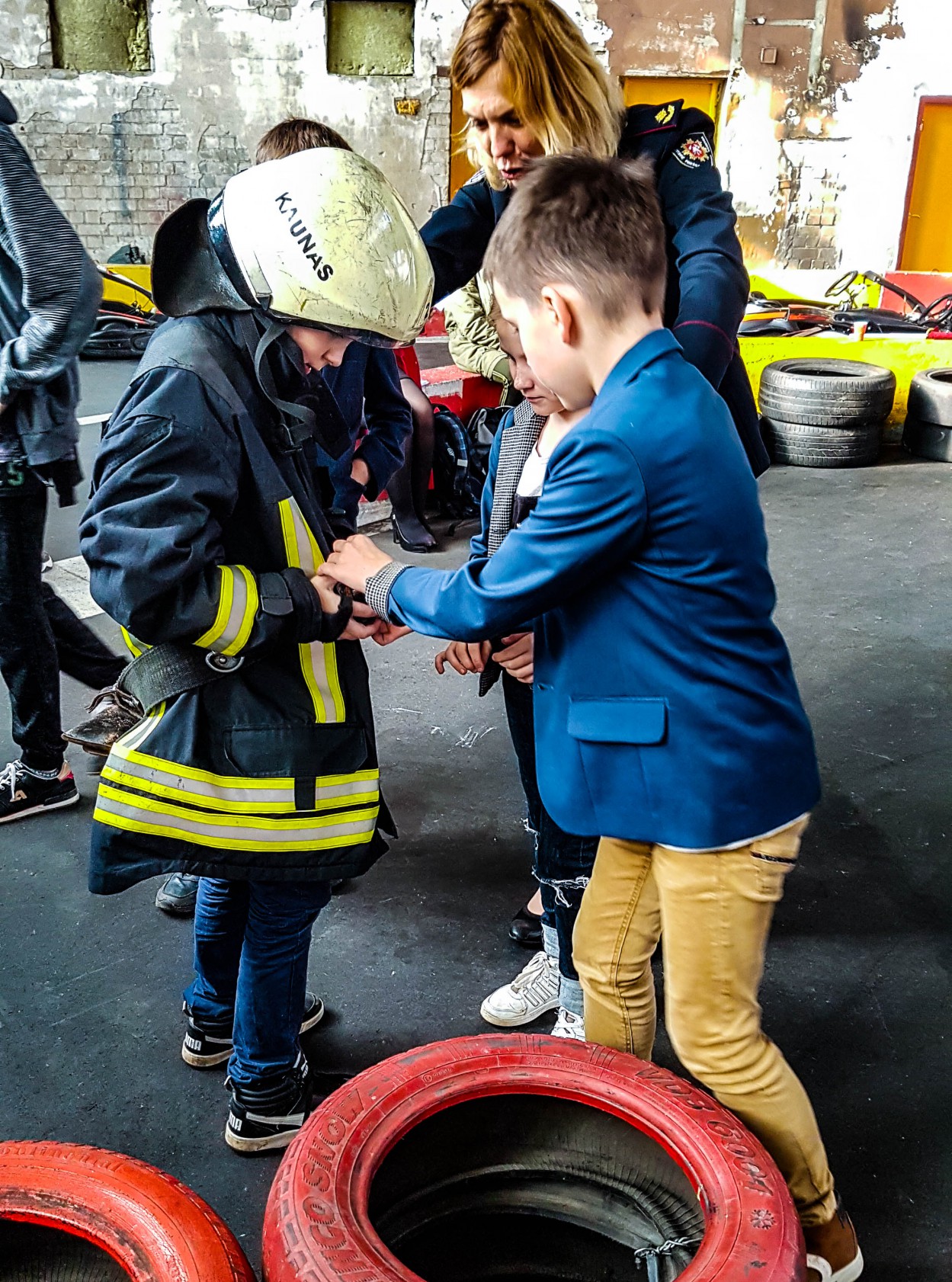 Azartiškai vyko ir ugniagesių užduotis. Čia mokiniai persikūnijo į tikrus ugniagesius ir, apsirengę specialia liepsnoms atsparia apranga, turėjo kiek įmanoma greičiau paruošti pagrindinę ugniagesių darbo įrangą.