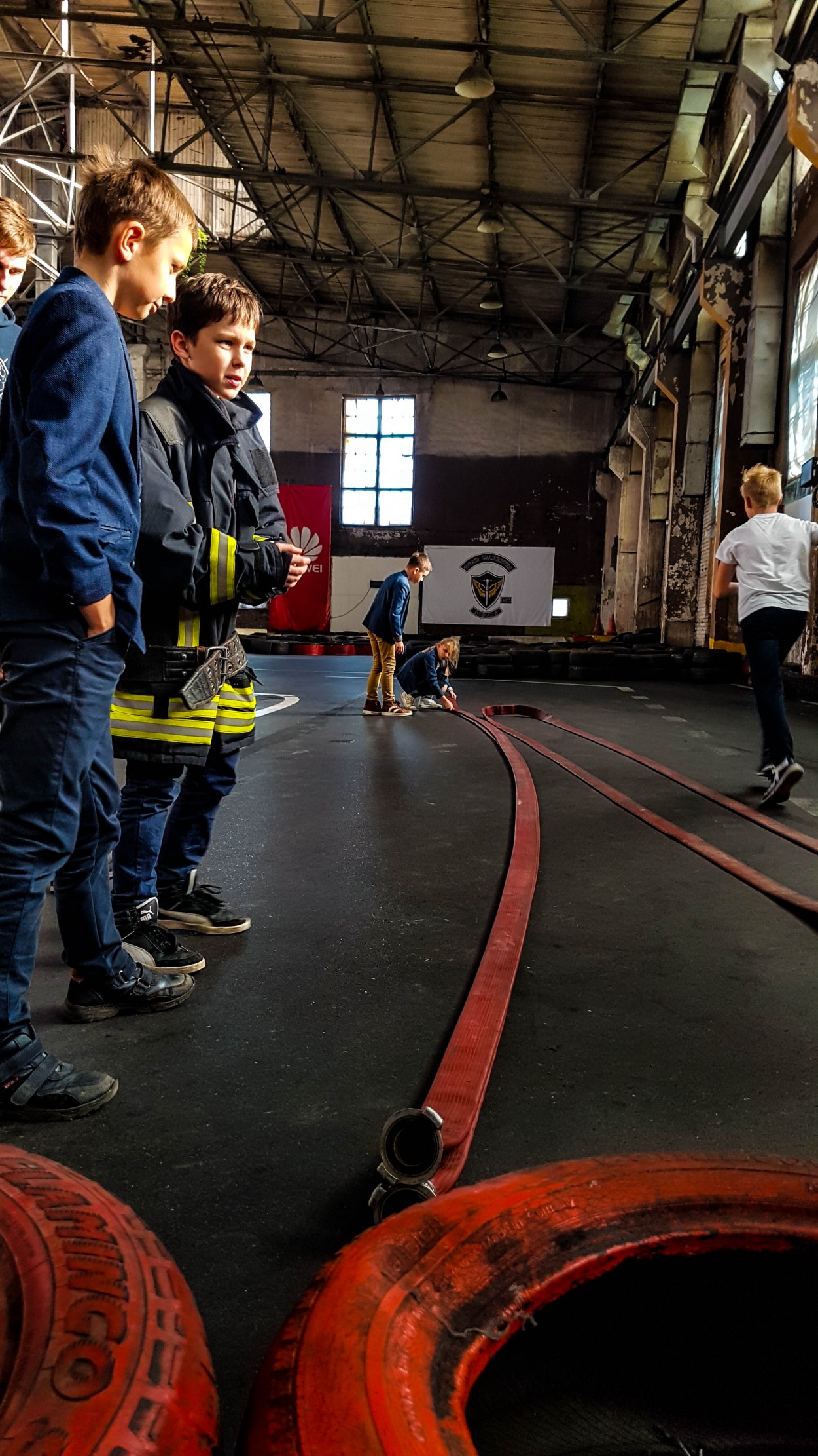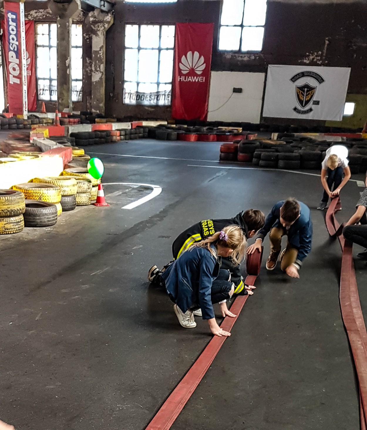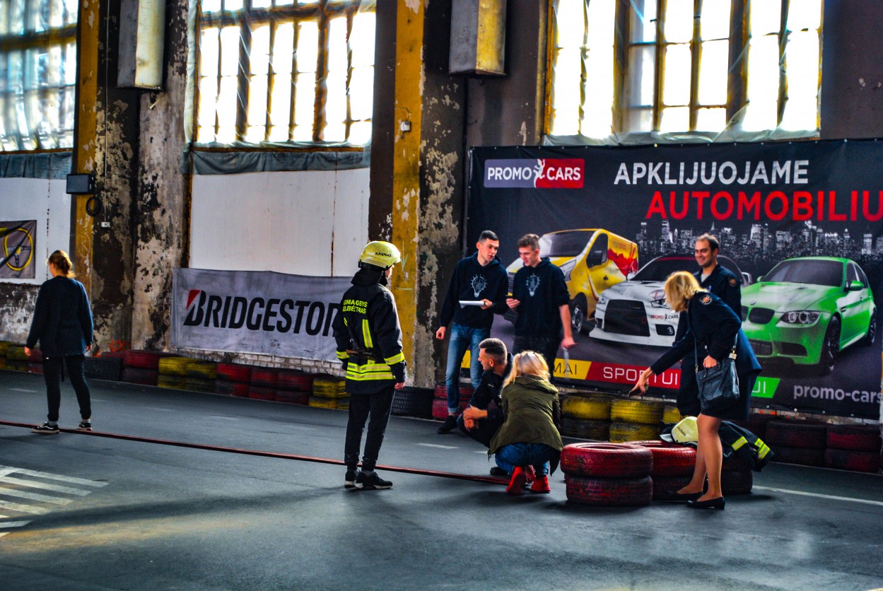 Azartiškai vyko ir ugniagesių užduotis. Čia mokiniai persikūnijo į tikrus ugniagesius ir, apsirengę specialia liepsnoms atsparia apranga, turėjo kiek įmanoma greičiau paruošti pagrindinę ugniagesių darbo įrangą.