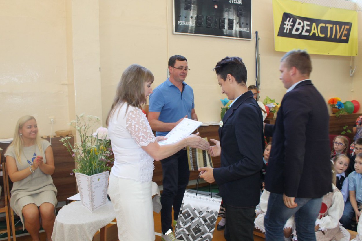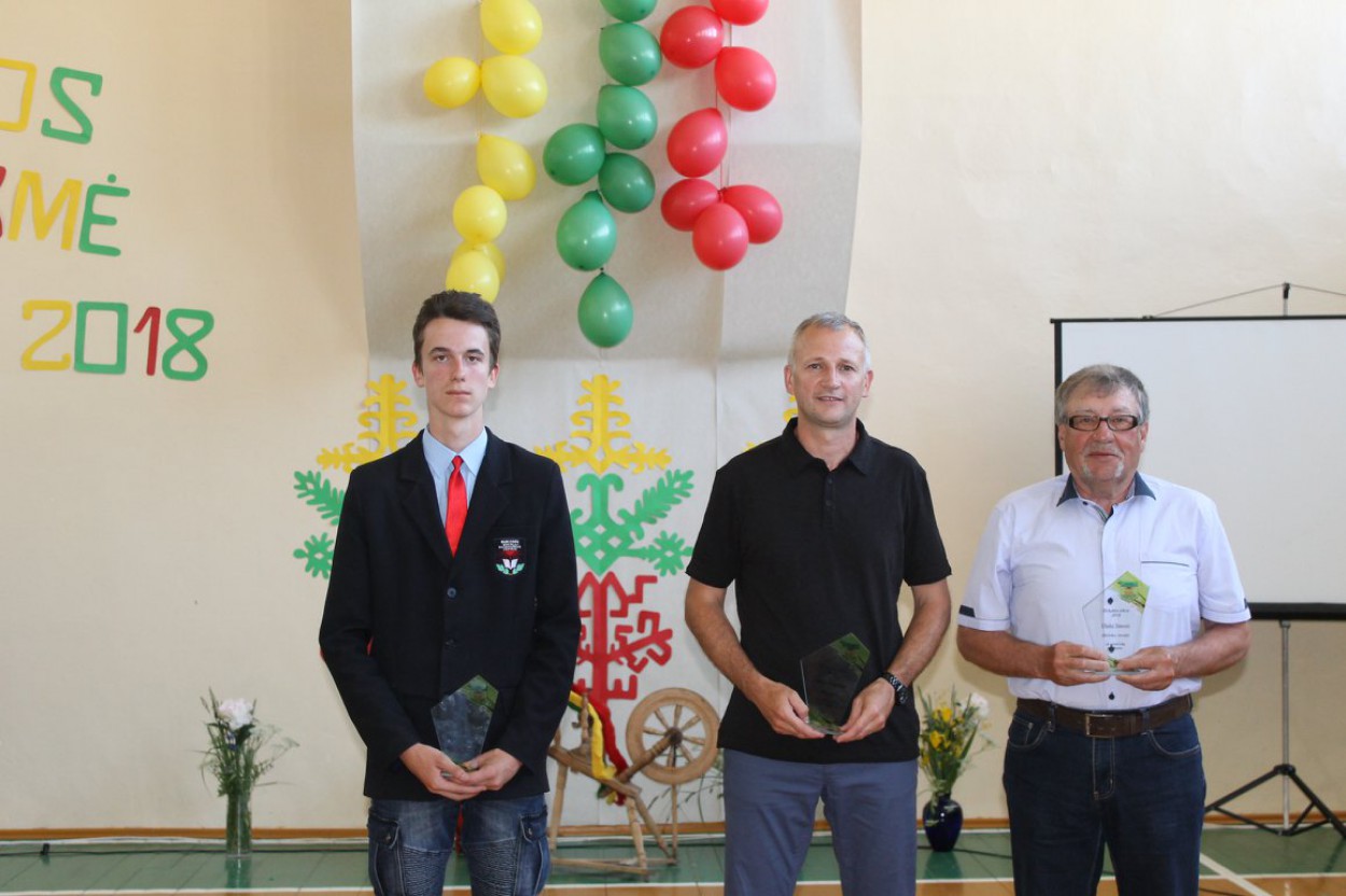Šiųmetinėje mokyklos sėkmėje pradžią davėme dar vienai gražiai tradicijai – simbolinėmis mokyklos statulėlėmis apdovanoti ypatingai mokyklai nusipelniusius žmones. Direktorė Dalia Autukienė apdovanojo 8 kl. mokinį Augustiną Gabnį už jo puikius akademinius pasiekimus įvairiose olimpiadose, kūno k. mokytoją Dainių Bisigirską už puikius mokinių pasirodymus tiek rajone, tiek respublikoje, ūkininką Vladą Tuzovą už jo kasmetinę finansinę paramą apdovanojant geriausius mokyklos sportininkus.