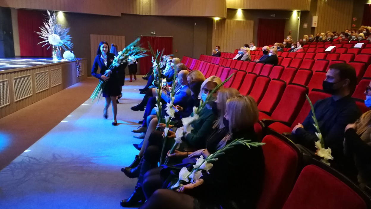 Į švietimo bendruomenę mažiau nei prieš du metus įsiliejusiems mokytojams, kurių viso 30, iš mokinių rankų skirtos gėlės.