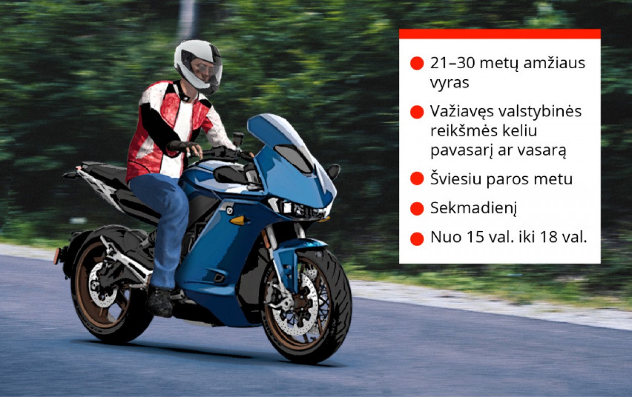 Intensyvėjant motociklininkų sezonui, valstybės įmonė Lietuvos automobilių kelių direkcija (toliau – Kelių direkcija) išanalizavo 2020 metų eismo įvykių, kuriuose žuvo motociklų vairuotojai, duomenis ir sudarė pernai Lietuvos keliuose žuvusio motociklo vairuotojo paveikslą: 21–30 metų amžiaus vyras, kuris žuvo važiuodamas valstybinės reikšmes rajoniniu keliu pavasarį arba vasarą, sekmadienį, šviesiu paros metu, 15.00–18.00 val.