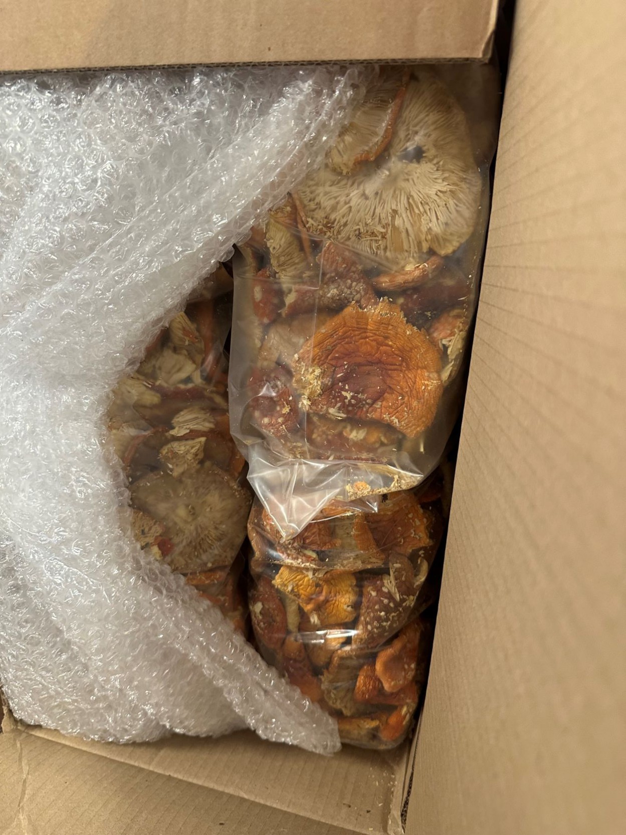 Muitininkams iškart kilo įtarimų, kad tai gali būti musmirės. Iš viso buvo bandoma persiųsti iš Baltarusijos - 181,89 kg. džiovintų grybų, kurių bendra vertė 964,02 eurų.