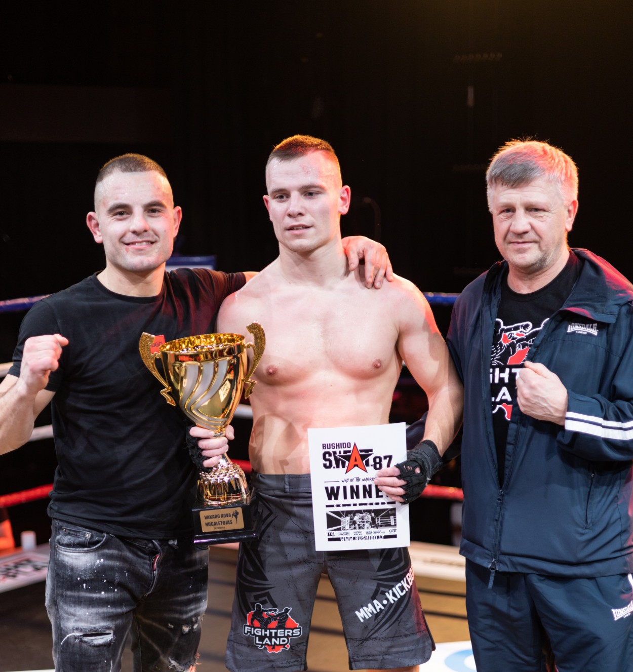 Jonavietis Naglis Tamaševičius, atstovaudamas klubą Fightersland, vienoje iš pagrindinių vakaro kovų užtikrintai ir techniškai iškovojo pergalę. 80 kg svorio kategorijoje, tirs raundus po tris minutes, sportininkas puikiai atsilaikė ir nugalėjo varžovą iš Kauno. Naglio Tamaševičiaus pergalė atvėrė duris į tolimesnius KOK ir MMA Bushido turnyrus.