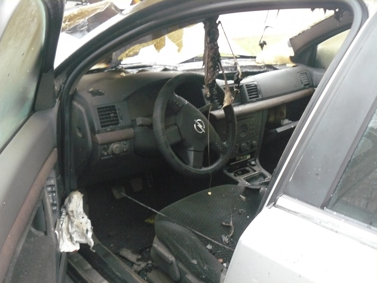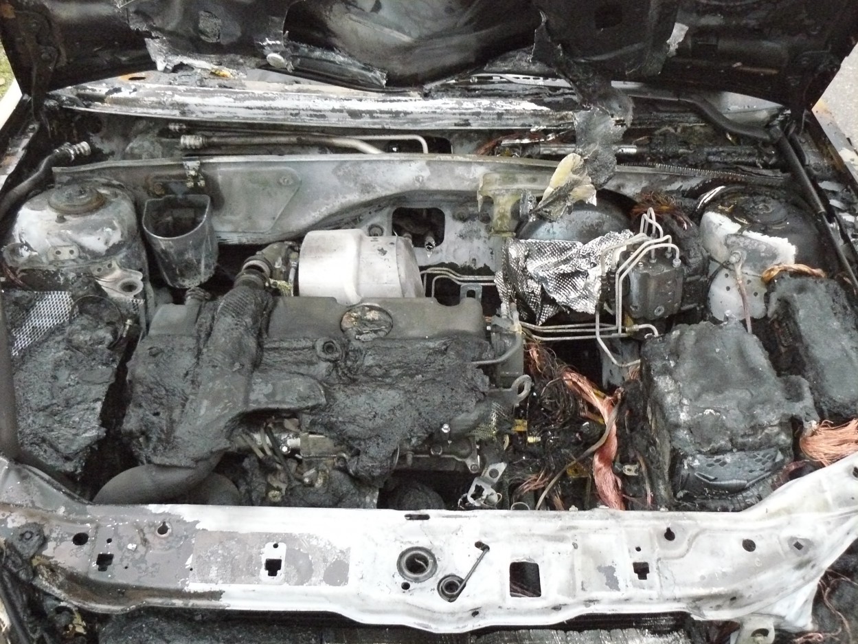 Gaisro metu išdegė variklio skyrius, sudegė priekiniai automobilio sparnai, trūko priekinis automobilio stiklas, apdegė prietaisų skydelis, aprūko salonas.