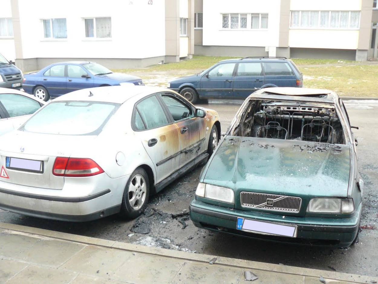 Naktį iš šeštadienio į sekmadienį sudegė vienas, o apdegė dar du šalia buvę automobiliai. Manoma, kad tai – padegimas. Į įvykio vietą iškviesti ir policijos pareigūnai.
