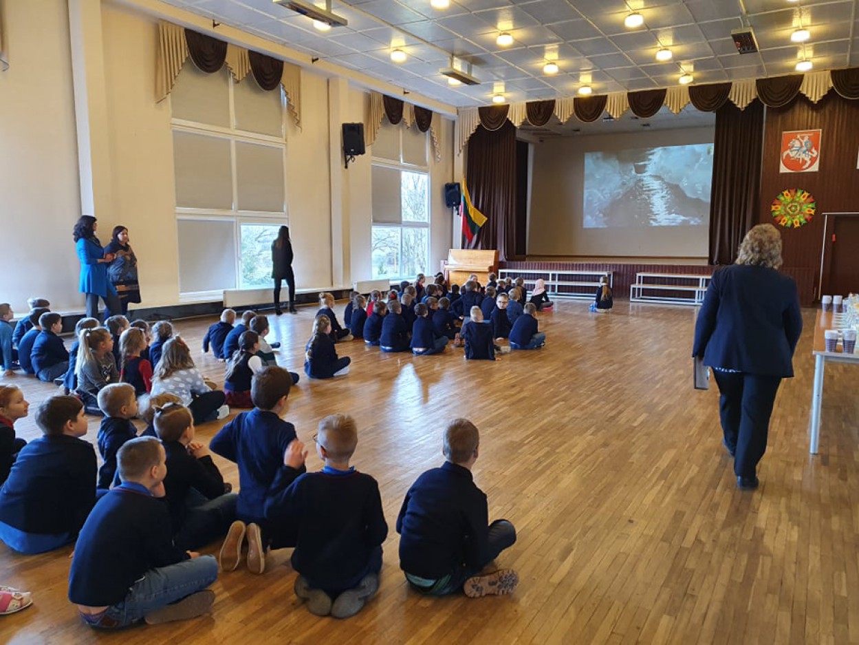 Šį kartą mokyklos sveikatos stiprinimo grupė kartu su Jonavos sveikatos biuru iššūkį priimti pakvietė pradinių klasių mokinius. Vasario 26 d. mokyklos sveikatos specialistė J. Giršienė ir mokyklos psichologė S.Cėgienė supažindino mokinius su „Sveikatiados“ tikslu, iššūkiu ir pristatė pažintinį filmą „Ledas. Vanduo. Garai“ ir informacinį stendą apie vandens svarbą žmogaus organizmui. Mokiniai sužinojo, koks unikalus yra vanduo, susidomėję stebėjo, kaip susidaro ledas, garai, kaip atsiranda rūkas ir debesys. Mokiniai išgirdo daug įdomių dalykų apie mūsų planetą ir joje esantį vandenį. Daugelis susimąstė, kad vanduo gyvybiškai svarbus žmogui, nes be maisto žmogus gali išgyventi kelias dienas ar net savaites, o be vandens žmogus išgyventų vos kelias dienas.