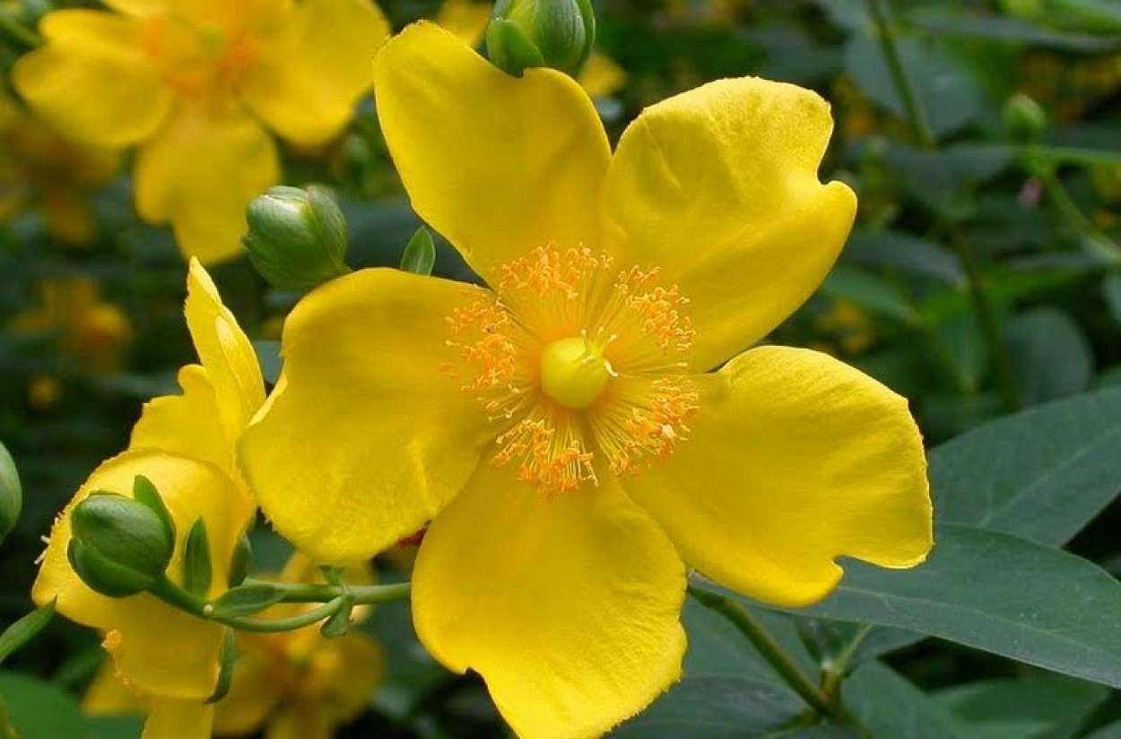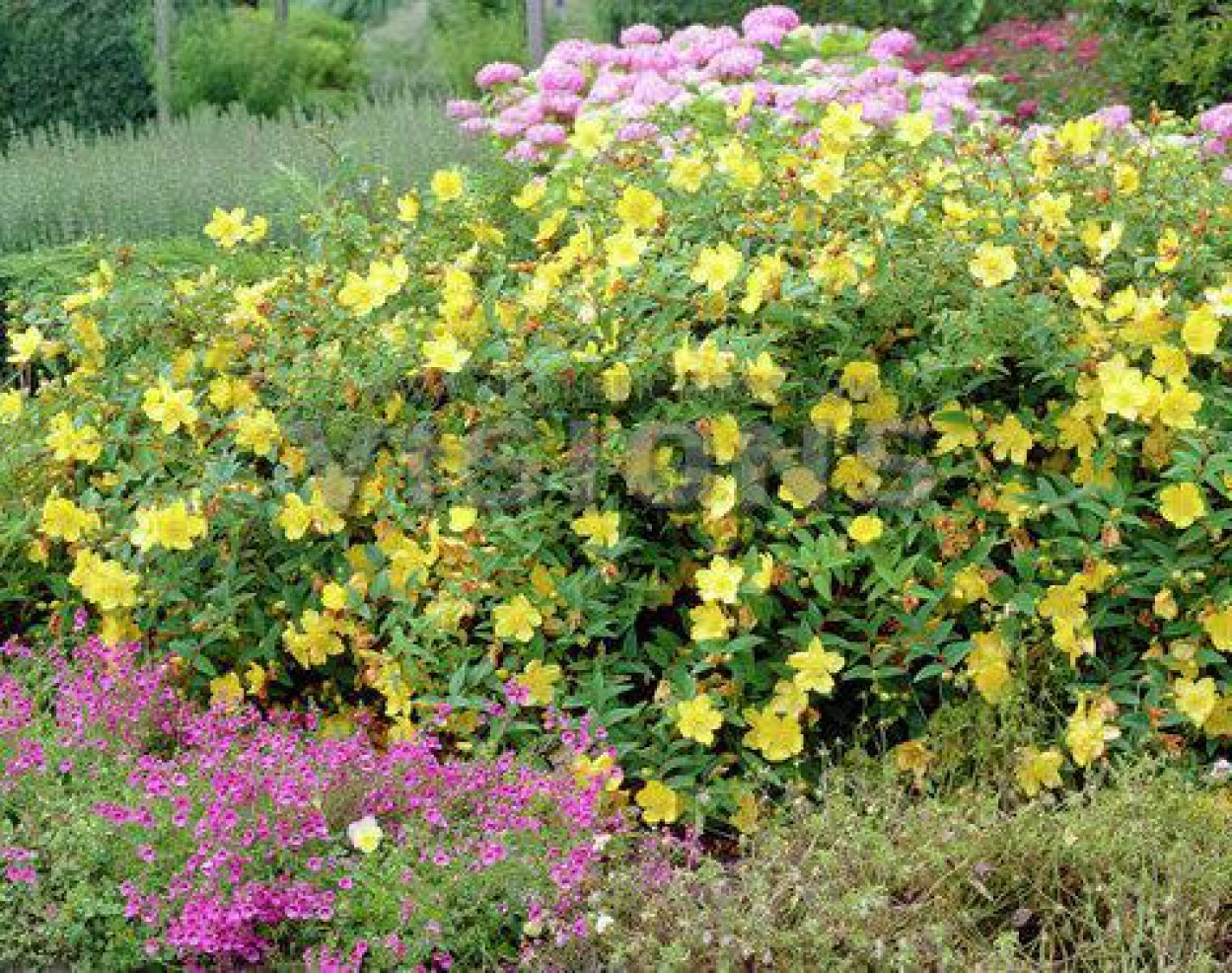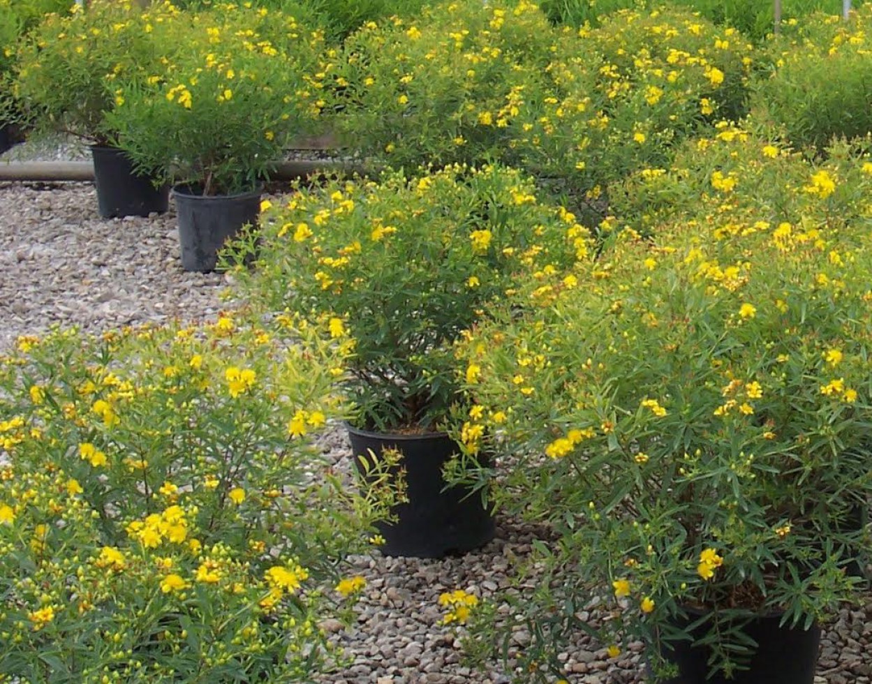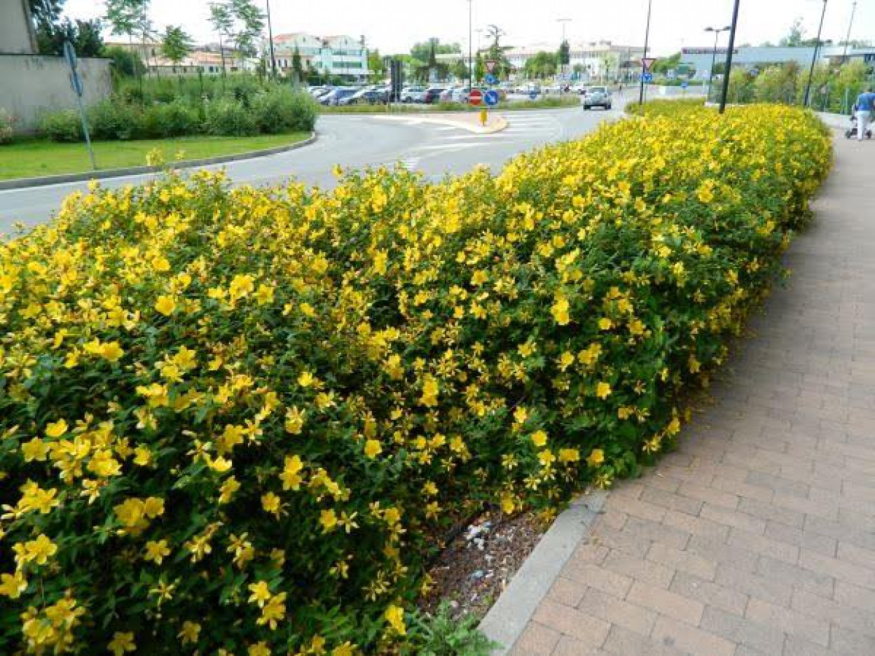 Pagrindinis Jonažolių skvero akcentas - sumedėjusios jonažolės (Hypericum ‘Hidcote‘, Hypericum kalmianum ‘Gemo‘ ). Tai vieni gražiausių žemaūgių krūmų ryškiais, skaisčiai geltonais žiedais, o jų žali ir melsvai žalsvi lapai rudenį pasidabina pačiais įvairiausiais raudonos ir geltonos spalvos atspalviais. Sumedėjusios jonažolės žydi nuo vidurvasario iki rudens, kai tuo metu dauguma kitų krūmų jau būna peržydėję.