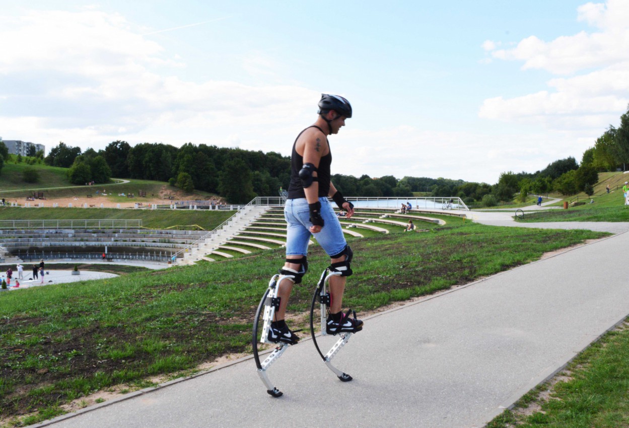 Greta šoklių „Kengūros kojos“ jonaviečiai dar nuomos ir riedžius. Pasak M.Virbalo, jie – panašūs į tuos, kuriais važinėja kai kurių Lietuvos miestų policijos pareigūnai.
