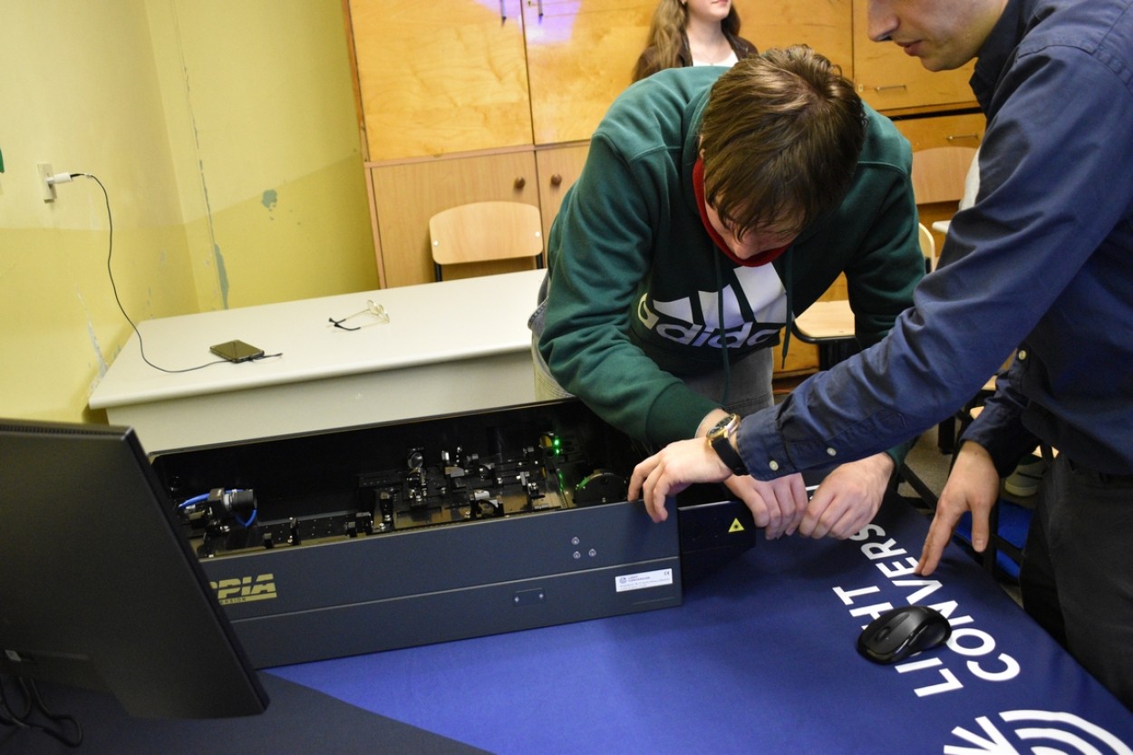 Į laboratoriją ,,FIZIKA – RIZIKA“ susirinko vyriška kompanija. Vaikinams iš įvairių klasių rūpėjo klausimas: kuo gali būti patrauklus ir įdomus šis mokslas? Anot veiklų vedėjų, alumnų Rimvydo Naruševičiaus ir Gusto Petrusevičiaus, fizika juos ir naktį vilioja. Savo prieraišumą ir atsidavimą šiai mokslo sričiai jie puikiai pademonstravo organizuodami tris laboratorinius bandymus: Stuko dėsnis, laisvojo kritimo pagreitis ir krintančiųjų kūnų judėjimas. Nors darbų pavadinimai skamba labai rimtai ir moksliškai, tačiau atlikdami užduotis jaunieji fizikai juokavo, draugiškai replikavo ir smagiai vakarojo. Gimnazistai darniai pritarė ironiškai vedėjų minčiai: ,,trūksta varžto, trūksta antro, matos -fizikas iš karto!“