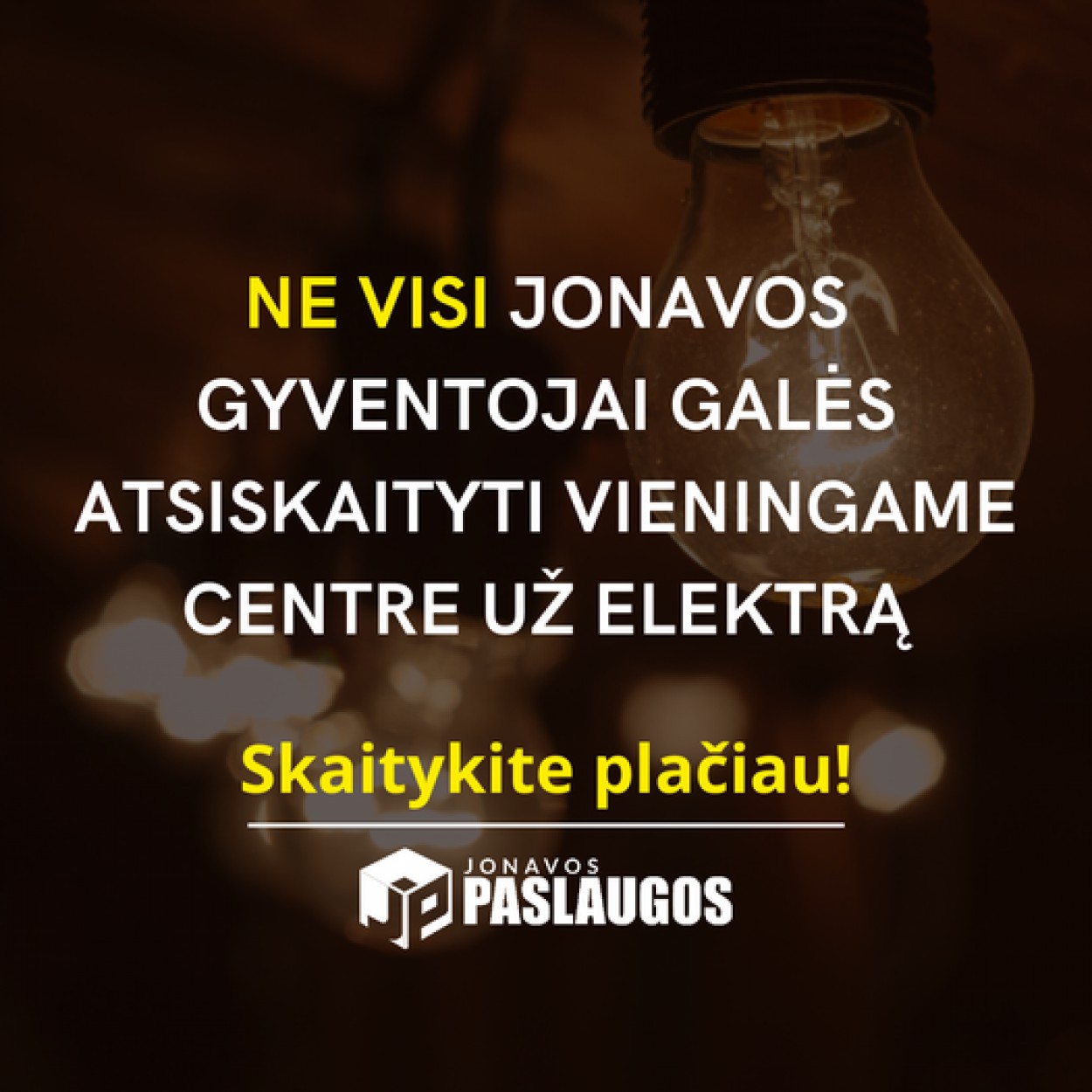 Žinome, kad klientams konsultuojantis ir renkantis elektros energijos tiekėjus kai kurie iš jų pokalbio metu informuoja gyventojus, kad niekas nesikeis ir elektros sąskaitas jonaviečiai galės apmokėti „Jonavos paslaugų“ kasoje ar savitarnoje www.mokijonava.lt ir toliau, tačiau bent jau kol kas tai yra netiesa. Tokia galimybė atsiras tik tuomet, kai kiti nepriklausomi tiekėjai sudarys sutartis su bendrove „Jonavos paslaugos“.