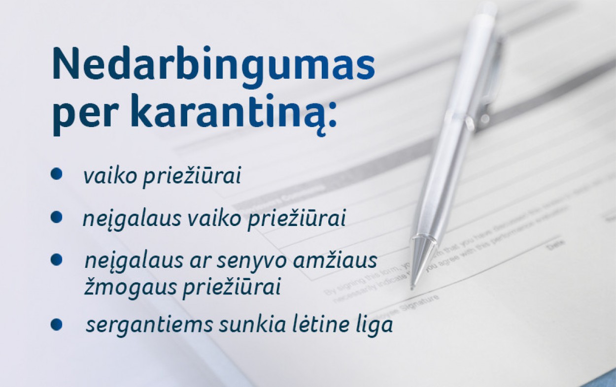 Tokia pati tvarka bus taikoma ir kai nedarbingumas per karantiną skiriamas, nes asmuo serga sunkia lėtine liga, prižiūri neįgalų vaiką ar dienos centrą iki karantino lankiusį neįgalųjį ar senyvo amžiaus žmogų.