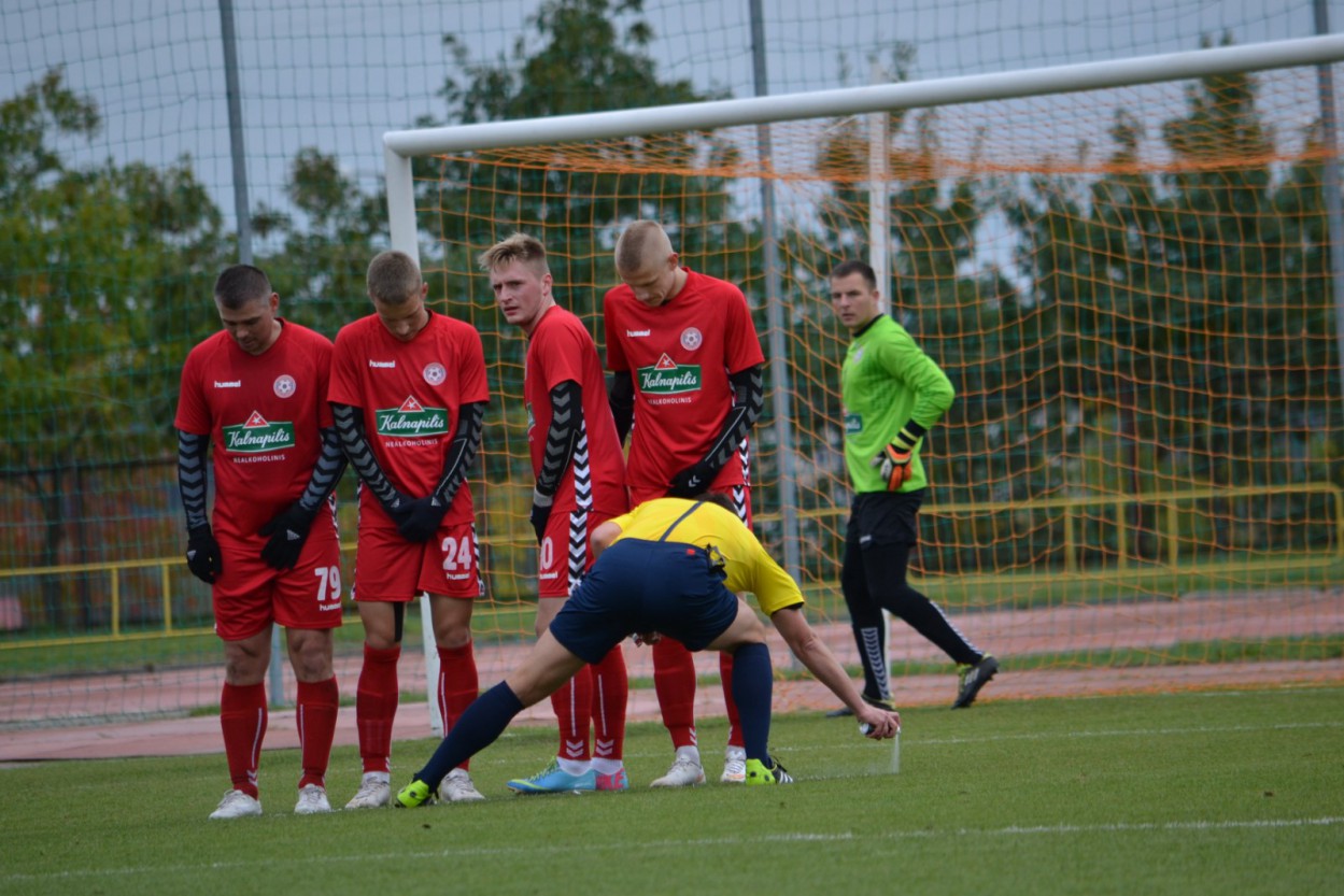 Dar pirmojoje rungtynių pusėje Jonavos futbolininkų pranašumas buvo apvainikuotas įvarčiu. 29 min. dešiniuoju kraštu į baudos aikštelę įsiveržė Eisvinas Utyra ir gynėjas jį neleistinai stabdė. Susitikimo teisėjas skyrė 11 m baudinį, kurį realizavo pats treneris M.Bezykornovas.
