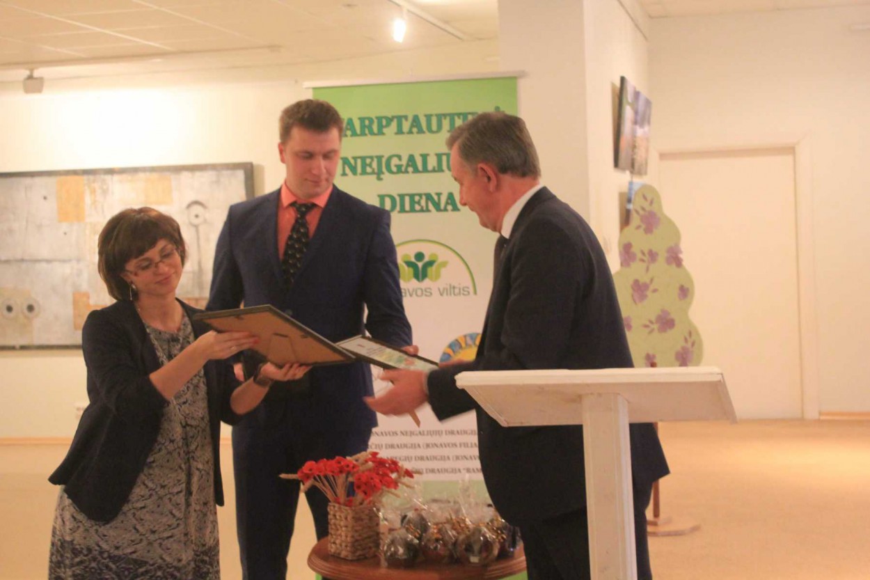 Renginio metu Susisiekimo ministras R.Sinkevičius įteikė padėkas neįgaliųjų organizacijų atstovams, o renginio svečias įmonės “Lonas” vadovas Domas Jakutis – “minkštas” dovanas Jonavos rajono neįgaliųjų veiklos centrui.