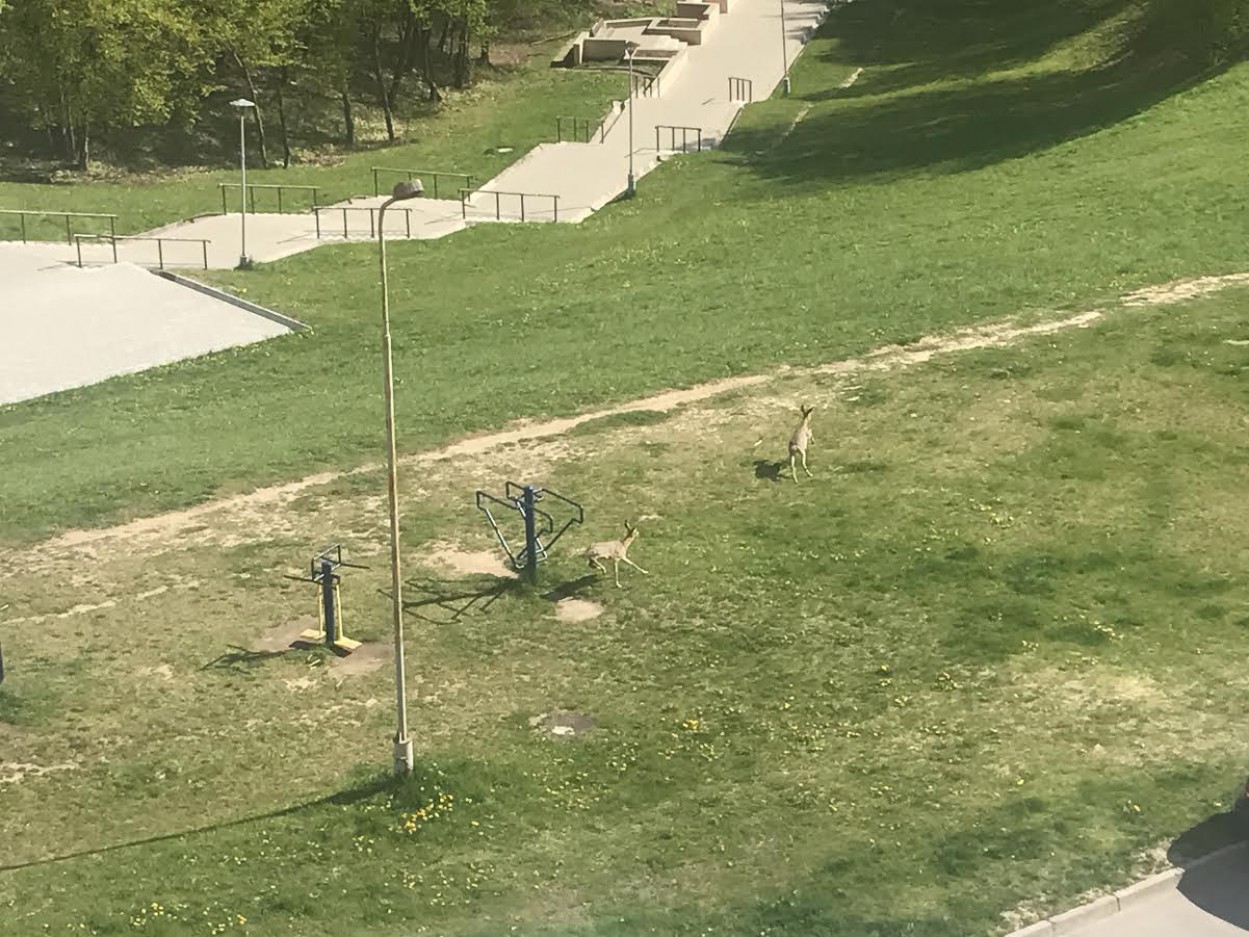 Stirnos netoli laiptų apsuko kelis ratus, vėliau pasileido link daugiabučių, o po to – vėl atgal ir galiausiai nėrė į krūmus.