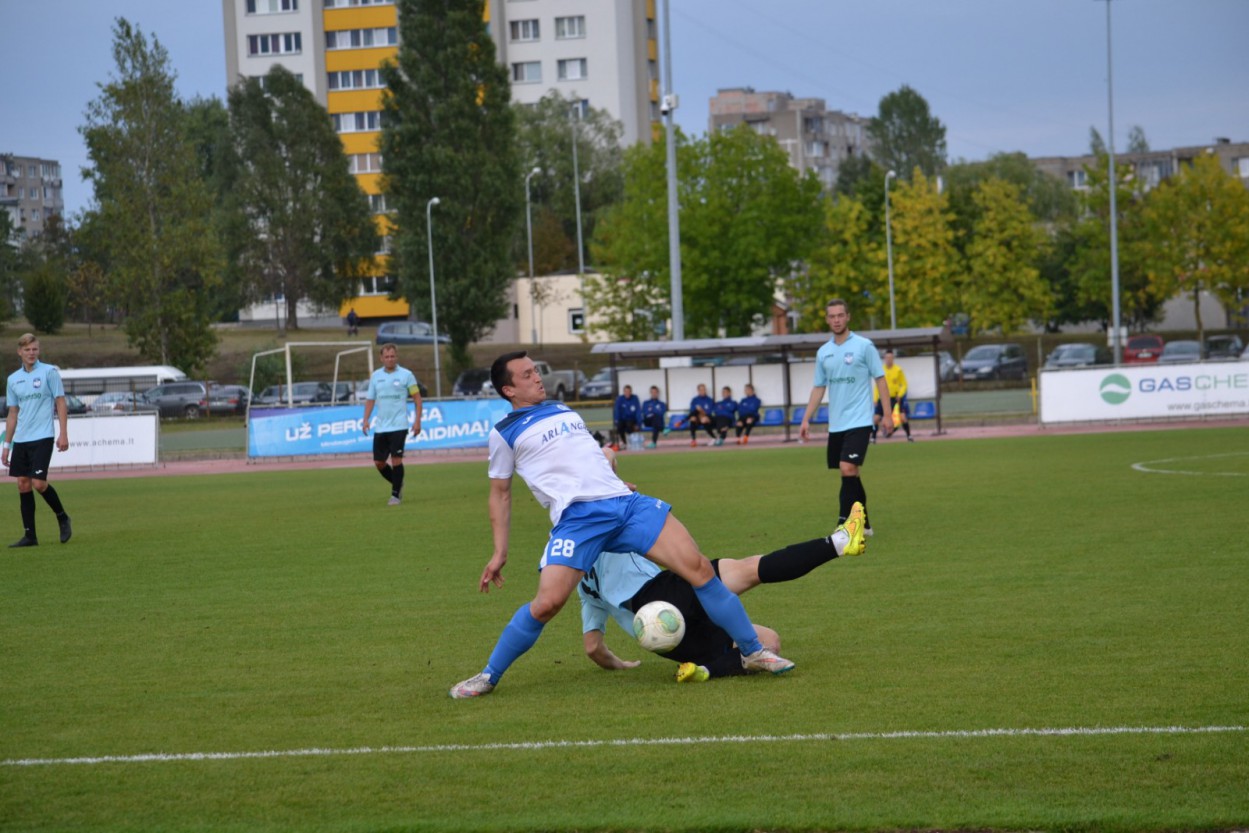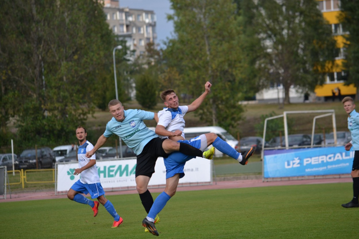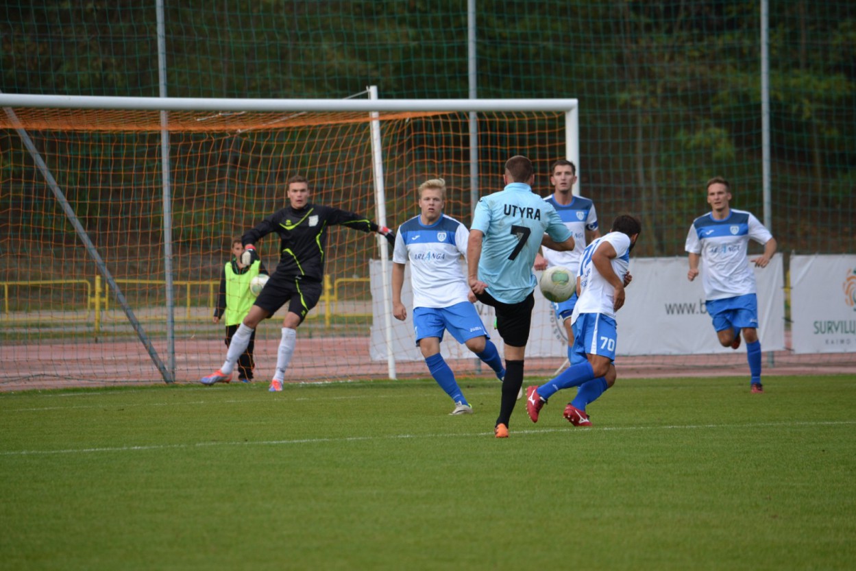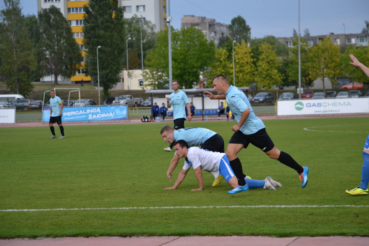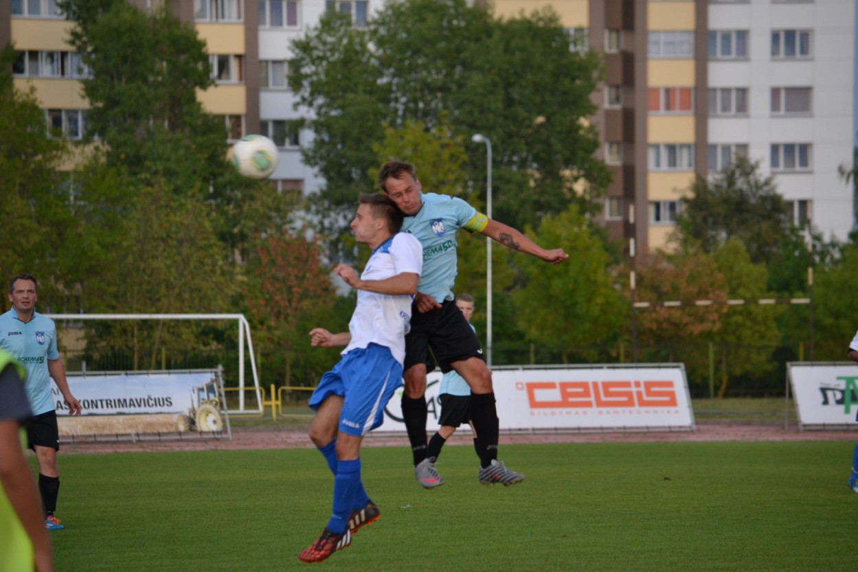 Pirmosiomis rungtynių minutėmis praleidę įvartį, jonaviečiams tik 57 min. pavyko atstatyti pusiausvyrą, kai 23 įvartį čempionate pavyko pelnyti Laurynui Stonkui. Visgi, iki pat dvikovos pabaigos neišnaudotos progos davė tik tašką, o paskutinėmis minutėmis dar raudoną kortelę užsidirbęs Arnas Gabulas kartu su Mariumi Ganusausku privalės praleisti kitas rungtynes su „Šilute“.