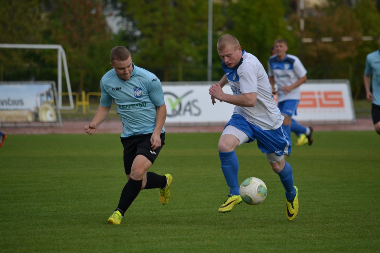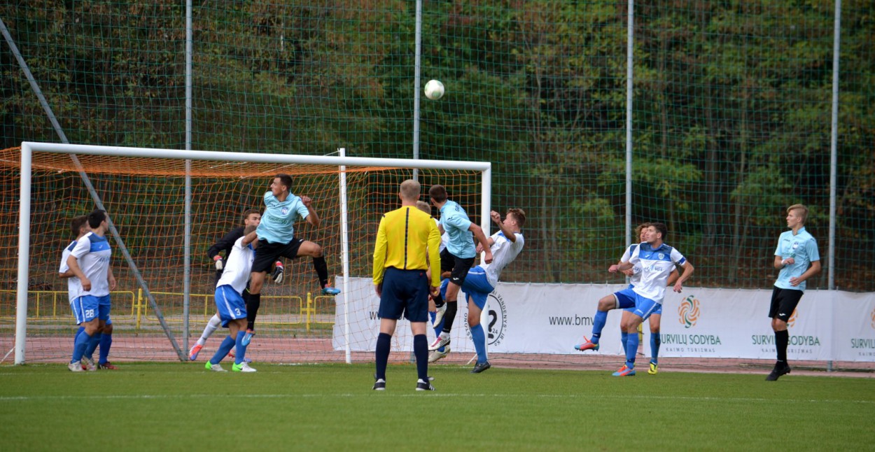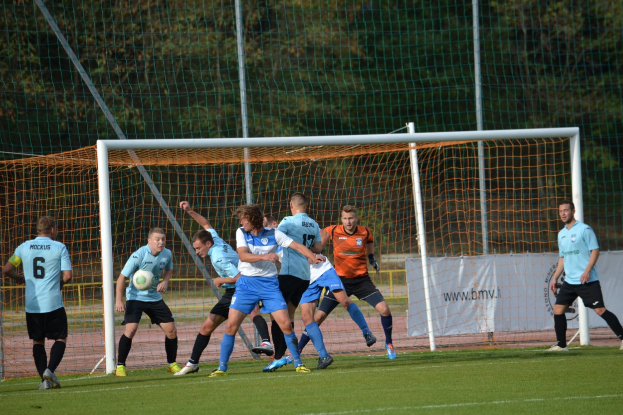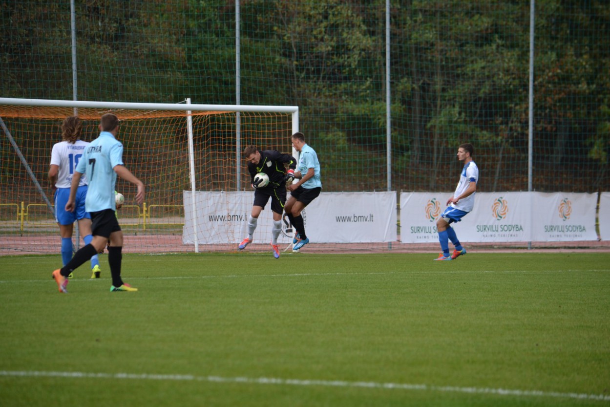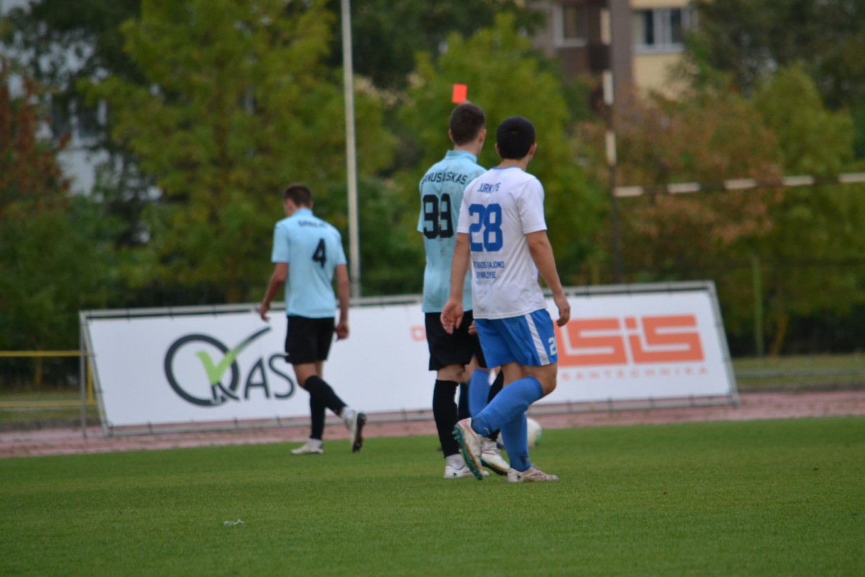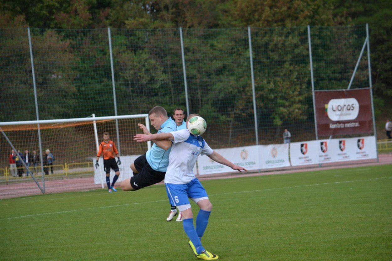 Pirmosiomis rungtynių minutėmis praleidę įvartį, jonaviečiams tik 57 min. pavyko atstatyti pusiausvyrą, kai 23 įvartį čempionate pavyko pelnyti Laurynui Stonkui. Visgi, iki pat dvikovos pabaigos neišnaudotos progos davė tik tašką, o paskutinėmis minutėmis dar raudoną kortelę užsidirbęs Arnas Gabulas kartu su Mariumi Ganusausku privalės praleisti kitas rungtynes su „Šilute“.