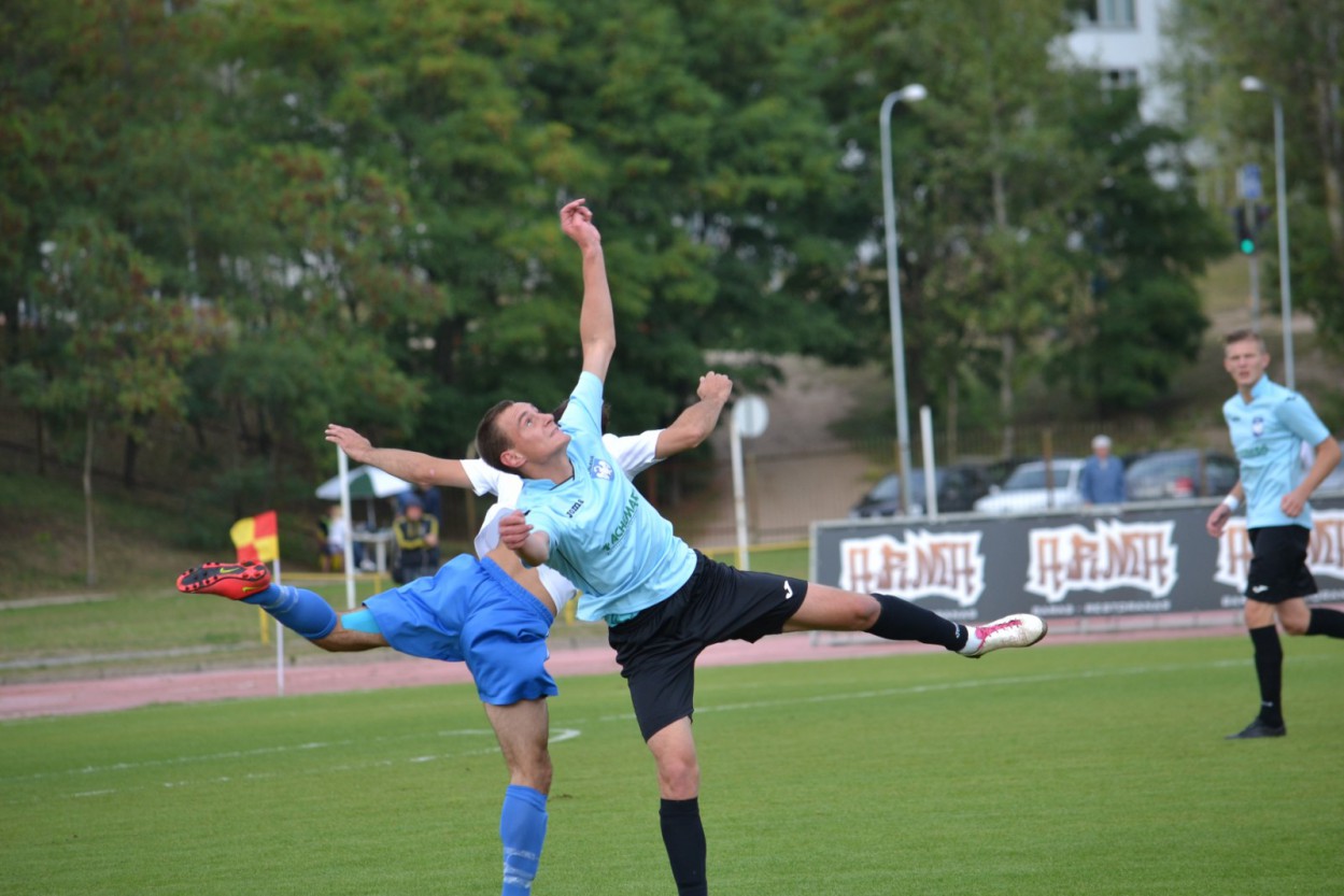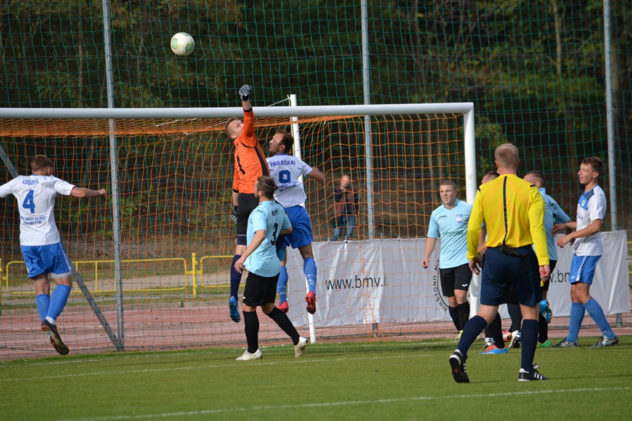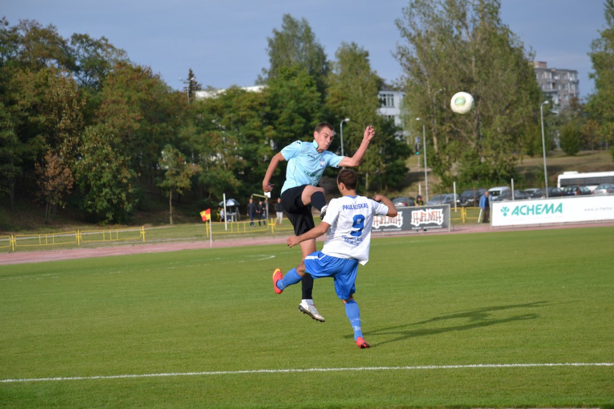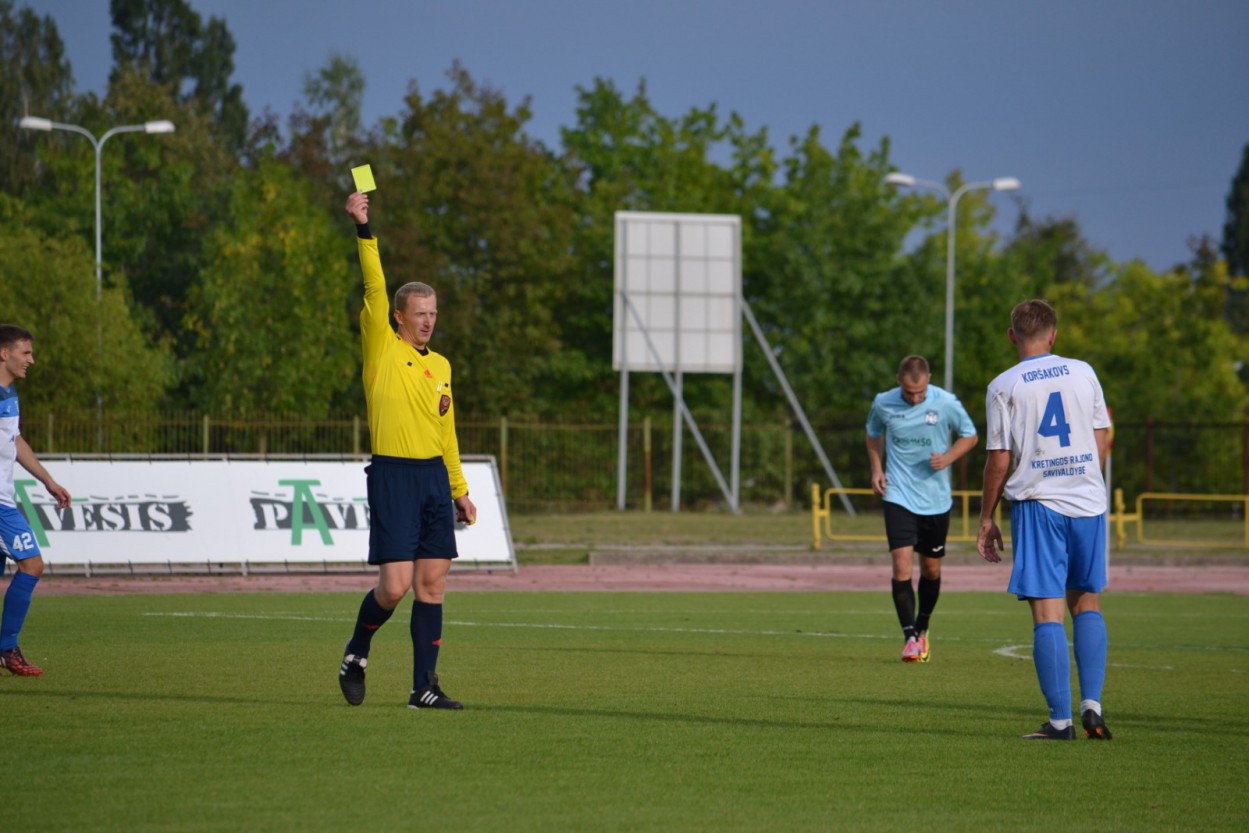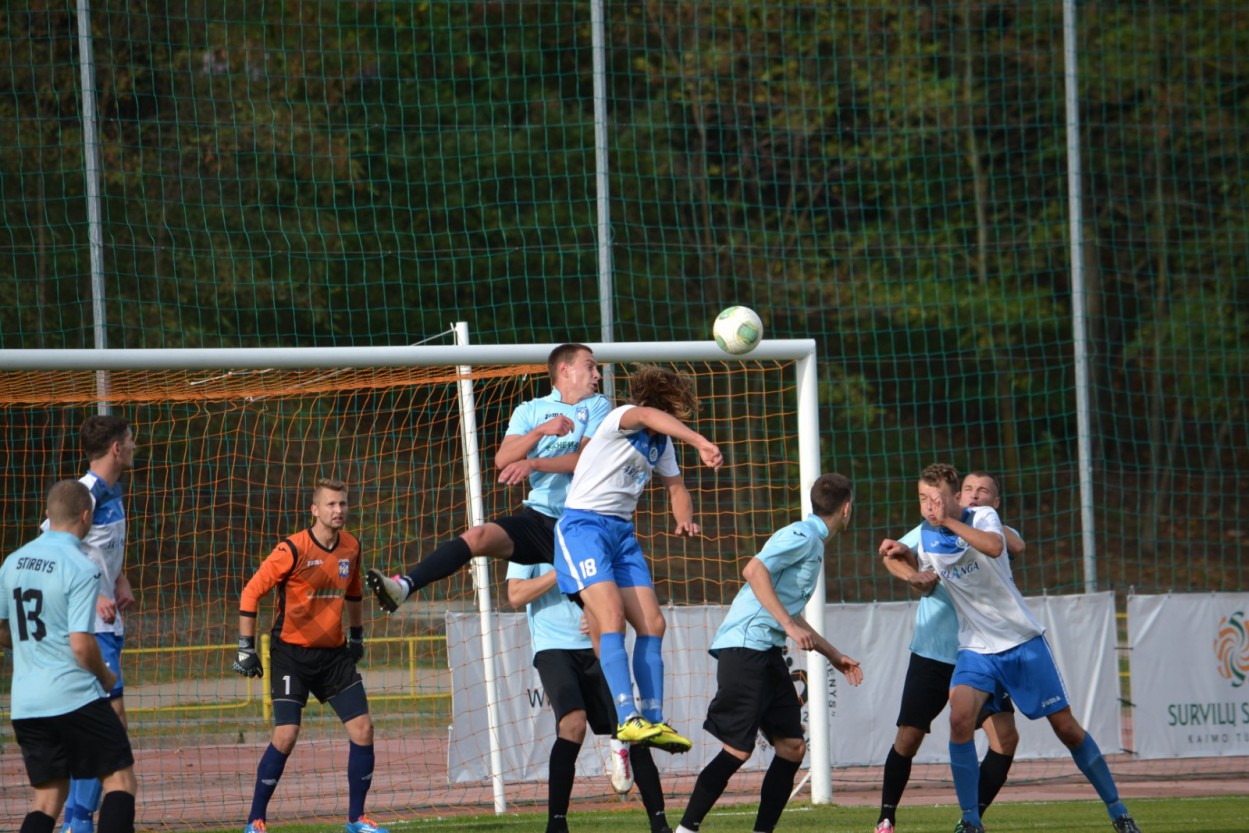 Pirmosiomis rungtynių minutėmis praleidę įvartį, jonaviečiams tik 57 min. pavyko atstatyti pusiausvyrą, kai 23 įvartį čempionate pavyko pelnyti Laurynui Stonkui. Visgi, iki pat dvikovos pabaigos neišnaudotos progos davė tik tašką, o paskutinėmis minutėmis dar raudoną kortelę užsidirbęs Arnas Gabulas kartu su Mariumi Ganusausku privalės praleisti kitas rungtynes su „Šilute“.