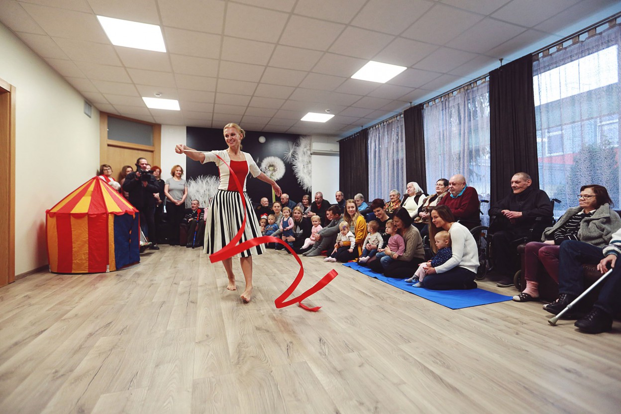 „Gyventojams sakėme, kad bus muzika, judesys ir mažučiai vaikai... Bet kai šypsenos papuošė mūsų senolių veidus, kai jie įsijungė į bendrą judesio ir muzikos veiklą, kai akys neatsitraukė nuo tų mažų ir žingeidžių mažylių – supratome, kad mūsų visi lūkesčiai yra viršyti. Šypsojosi net tie, kurie dažniausiai nesišypso. O vaikai, pasirodo, patys savaime veikia terapiškai: jiems kiekvienas žmogus yra vienodai gražus ir mielas, ar tai būtų senas, neįgalus, ar jaunas ir mažas. Jiems smalsu, jie eina, kabinasi į senolių lazdas, „tikrina“ neįgaliųjų vežimėlių ratus, šypsosi ir tiesia rankeles – jie glosto senolių širdis tokiu savo dėmesiu. Gera va taip pradėti pirmadienį: su nuotaika, su muzika, geru nusiteikimu, dėmesio parodymu artimui. Smagu, kai senoliai po teatro prieina ir padėkoja artistei. Smagu, kai šokio teatras atvyksta į svečius! Visų mūsų vardu sakom AČIŪ ir visada laukiame svečiuose“, - šnekėjo Jonavos globos namų specialistai.