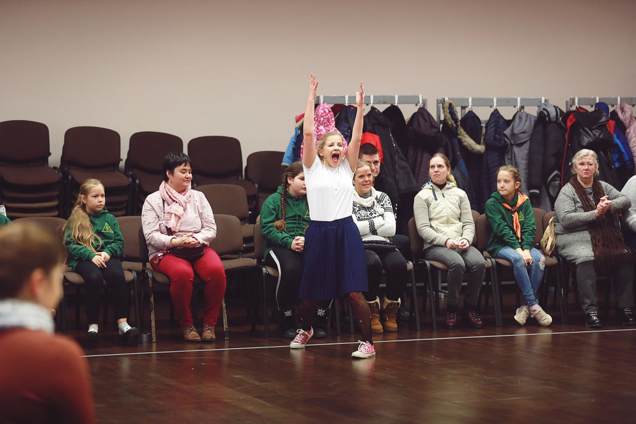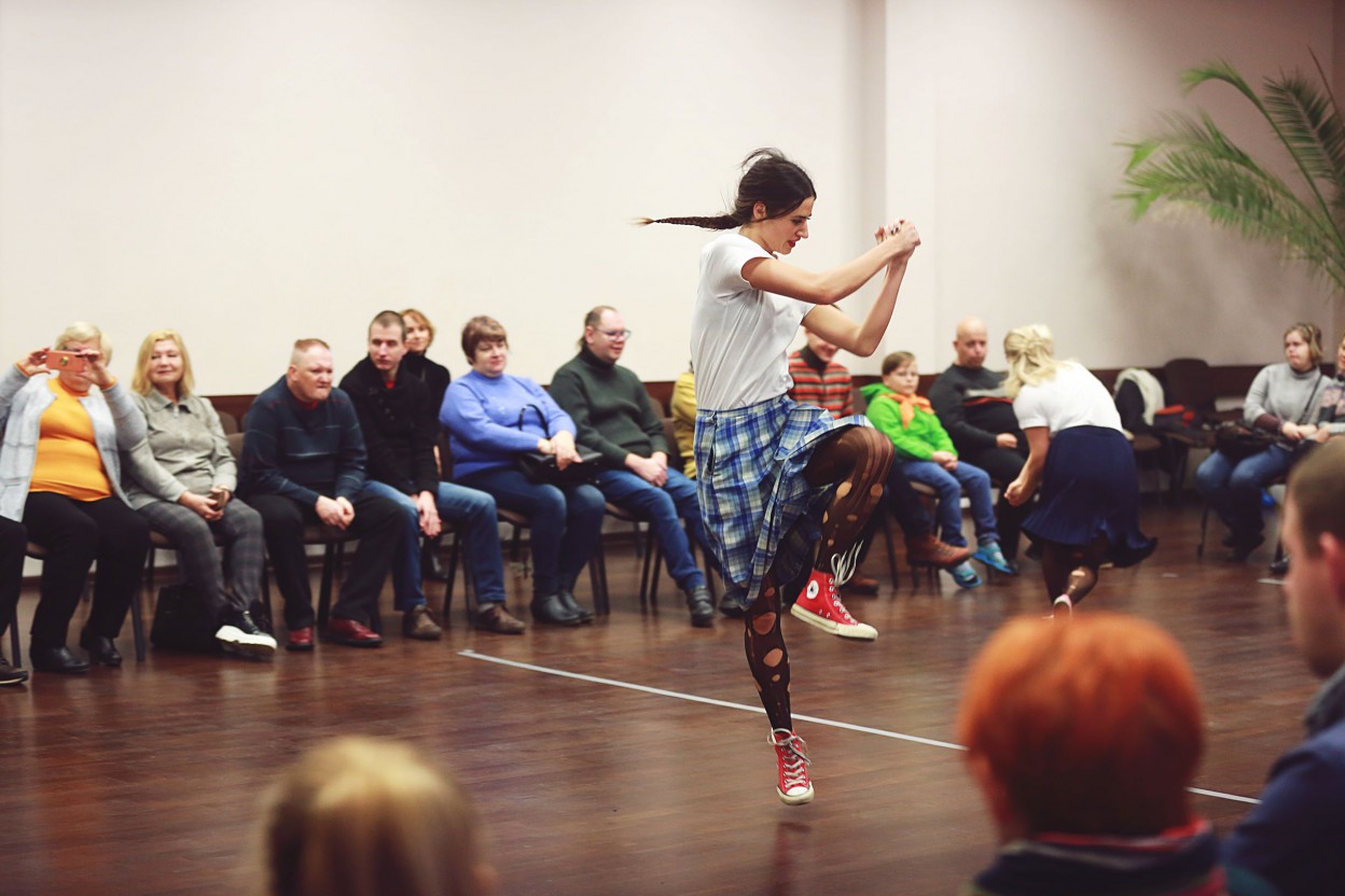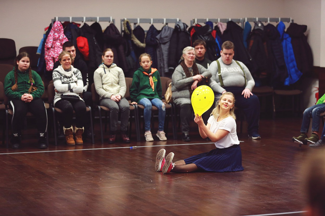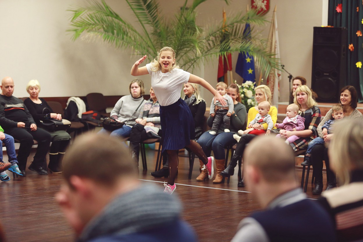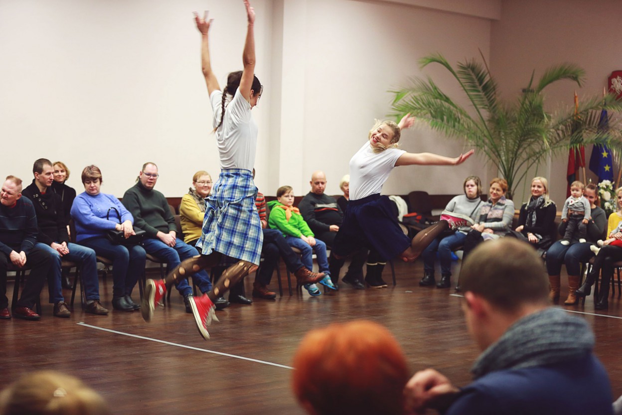 Šiandien, lapkričio 25 d., projekto iniciatoriai ir partneriai lankėsi J.Vareikio progimnazijoje, kur sutrikusio intelekto žmonių globos bendrijos „Jonavos Viltis“ nariams, Justino Vareikio progimnazijos skautų draugovės mokiniams bei VLC „Augu drąsiai“ mamoms su kūdikiams demonstruotas užburiantis šiuolaikinio šokio menas. Šokėjos Gabija ir Emilija, šokusios šokio teatre „Aura“, sugebėjo įtraukiai pademonstruoti, ką gali žmogaus kūnas užvaldytas šiuolaikinio šokio aistros, kaip emocijas gali perteikti šokėjas vien tik judesių pagalba.