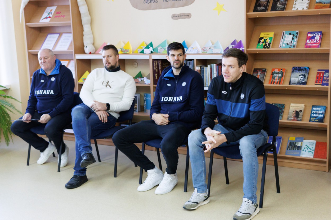 Penktadienį aikštelę atidarė ir kartu su mokiniais pirmieji išbandė Jonavos krepšinio klubo žaidėjai, treneris Virginijus Šeškus ir rajono savivaldybės vicemerė Birutė Gailienė.